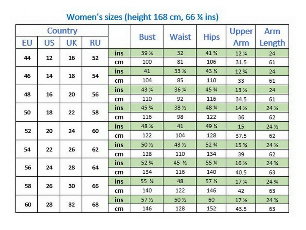 for Sizes 44-60 (EU) / 12-28 (US) / 16-32 (UK)