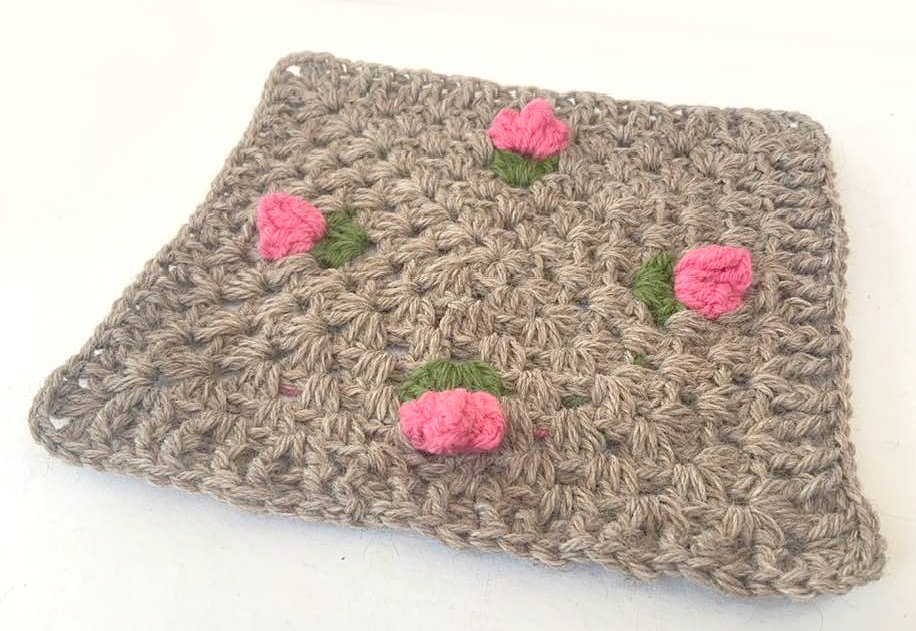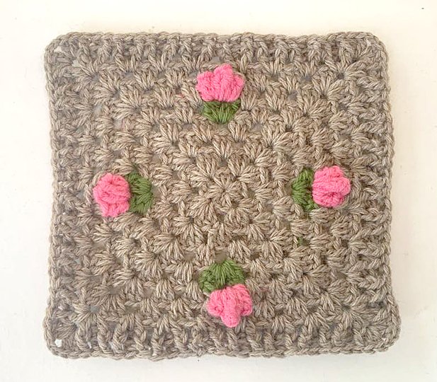 Das fertige TrachtenGranny mit Blümchen bei 9 RUNDEN eine Seitenlänge von 17 cm