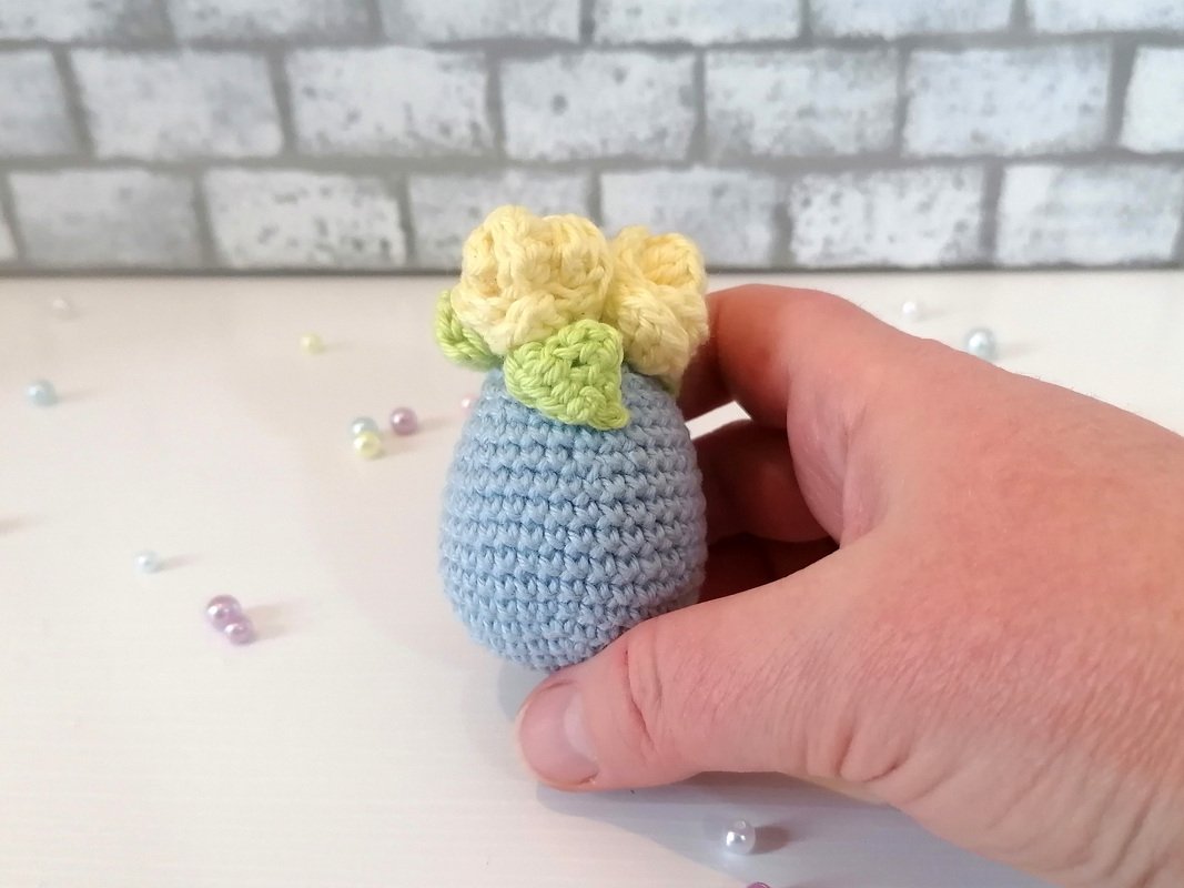 This pattern does not teach the basics of crochet. This crochet pattern consists only of written instructions and how-to photos that explain how to crochet an amigurumi egg decorated with roses.