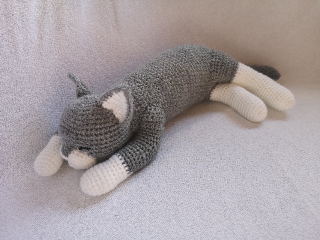 The sleeping cat is the perfect decoration for the sofa for cat fans, for example. With thicker yarn (e.g. chenille) it would even be about life-sized. Doesn't she look cuddly and dreamy as she lies there?