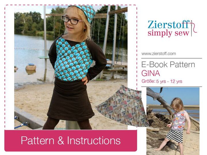 Sewing instructions and pattern for GINAs jersey skirt, sizes 110 – 152 / 5-12 yrs.