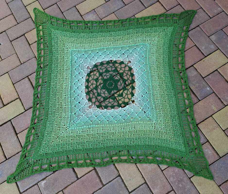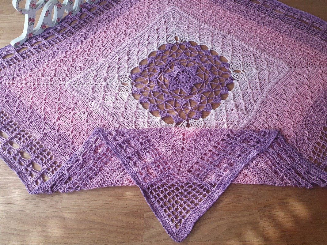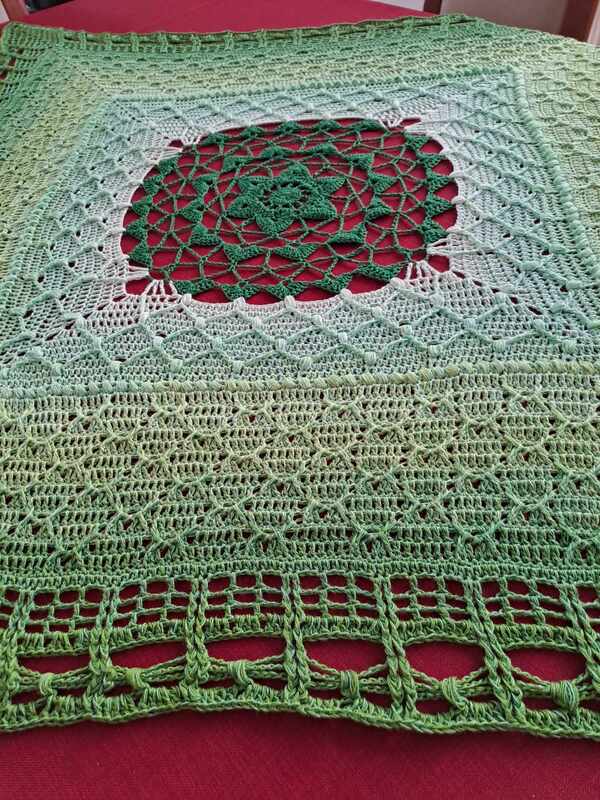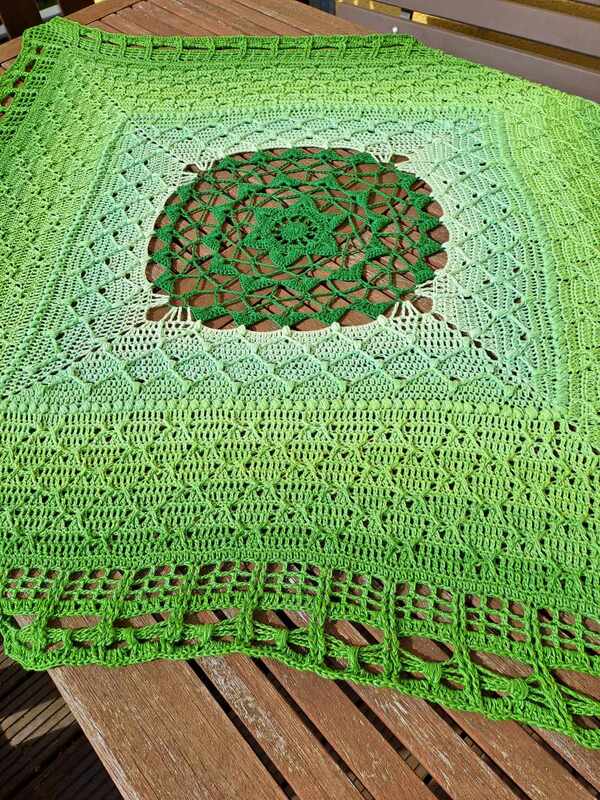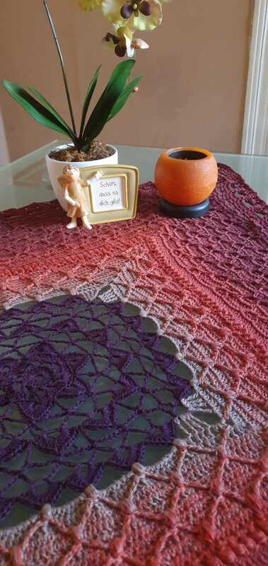 Die Tischdecke wird in 4 Teilen gehäkelt.