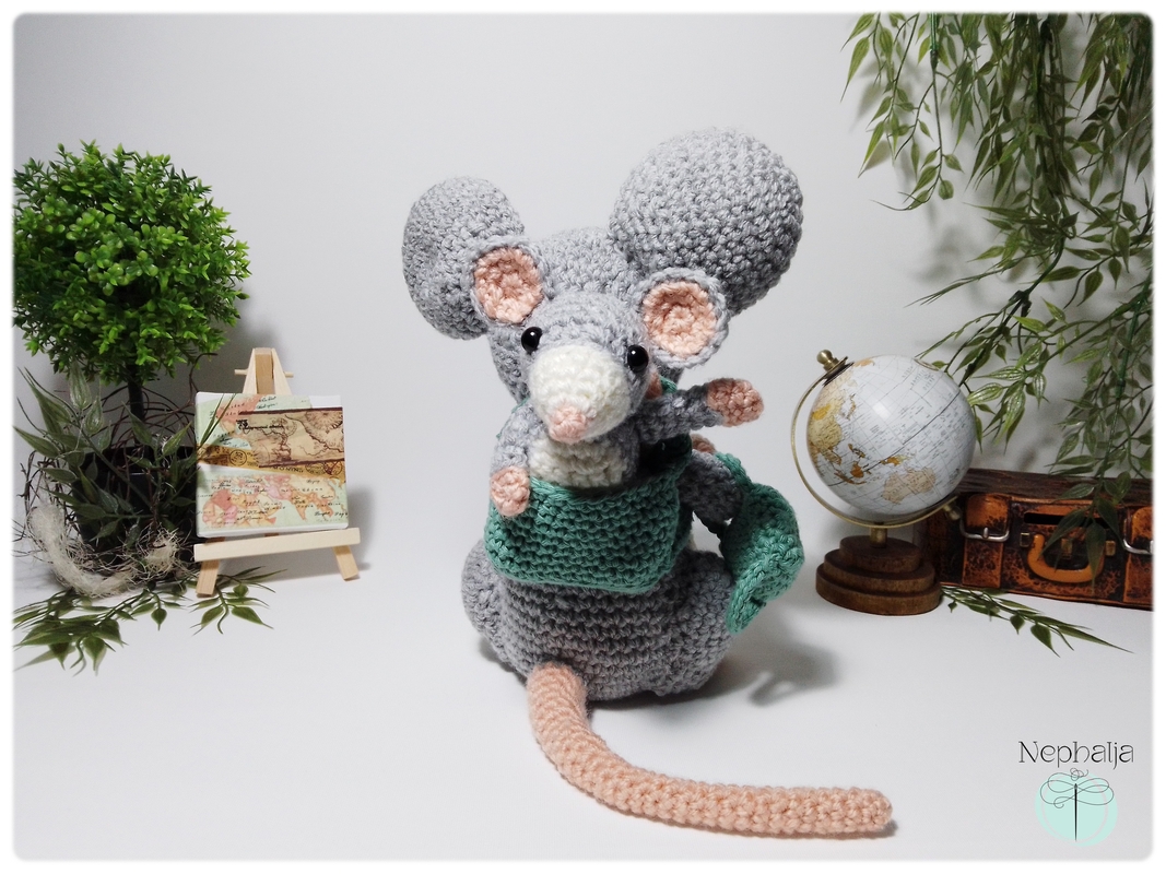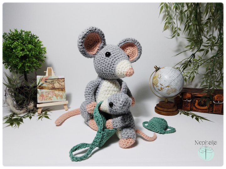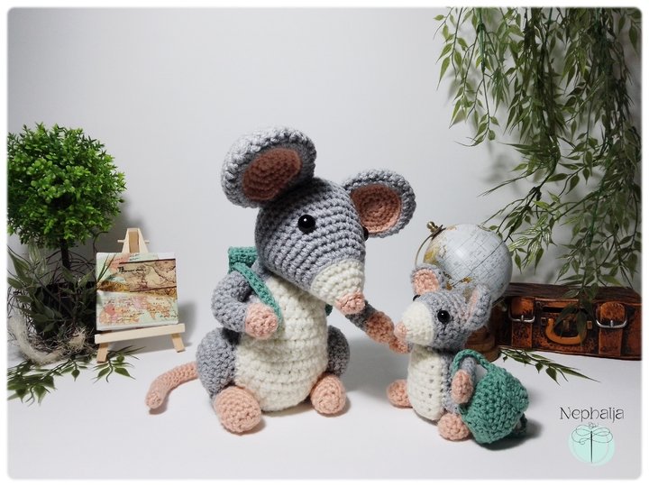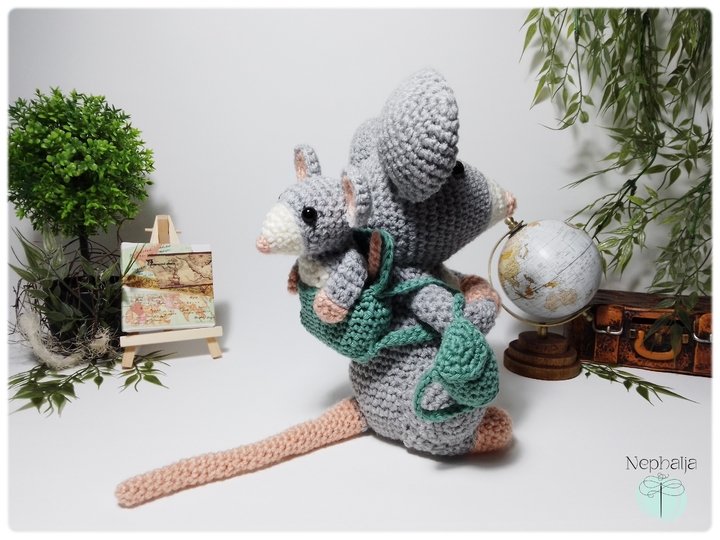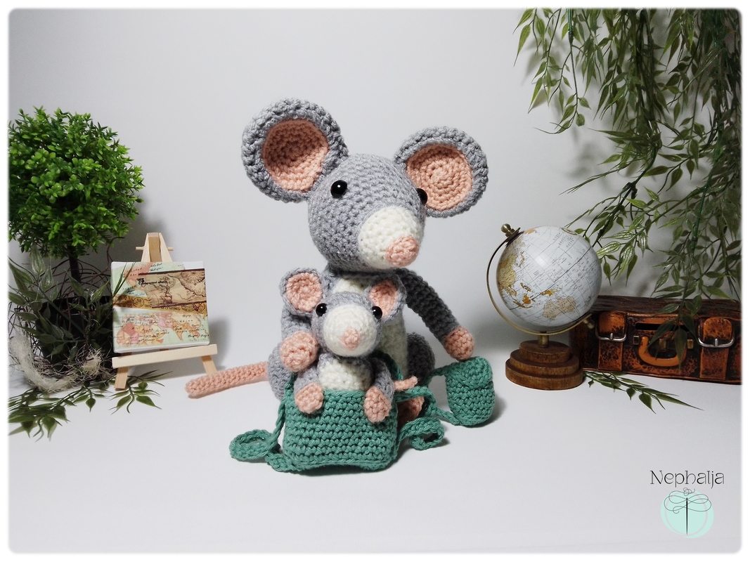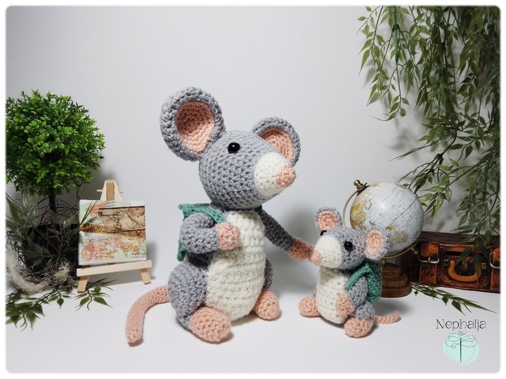 Mit dieser umfangreichen Häkelanleitung erschaffst du im Handumdrehen eine bezaubernde Szene mit einer Maus, ihrem Mausekind und den niedlichen Rucksäcken.