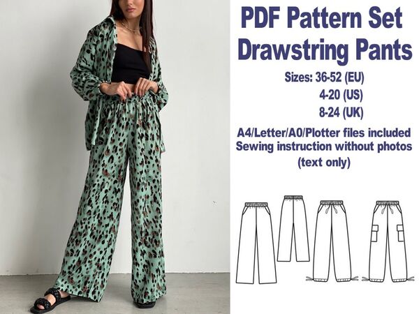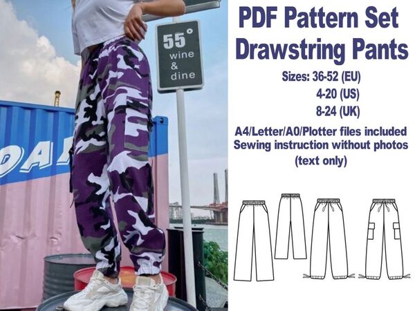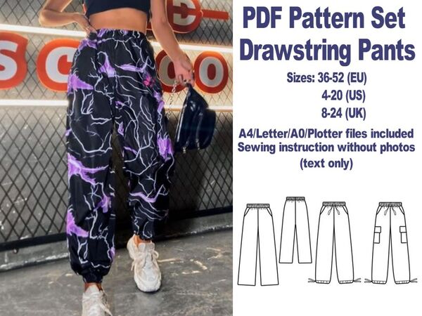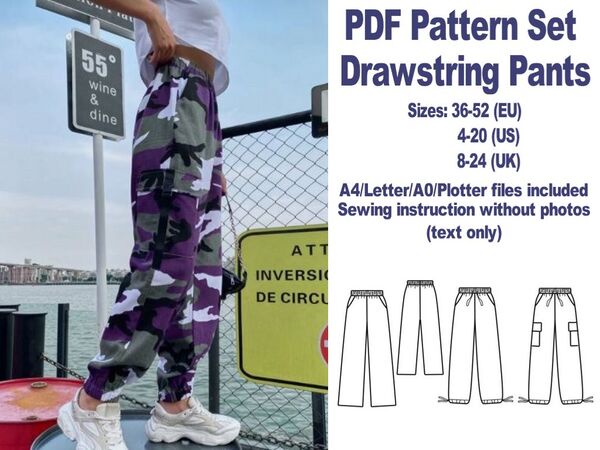 Drawstring Pants Pattern PDF Sewing Patterns Trousers Patterns PDF Pattern