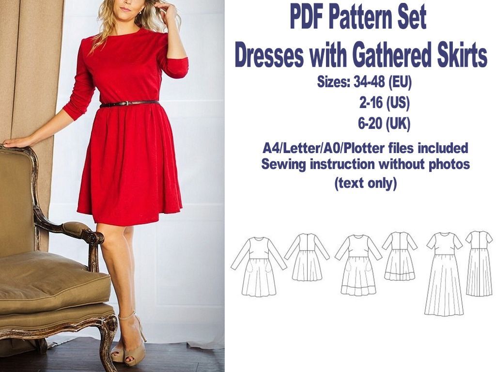 Option B - Dresses with gathered skirt (consists of two parts): gabardine, jersey, satin, сotton, linen, lace 150 cm width: