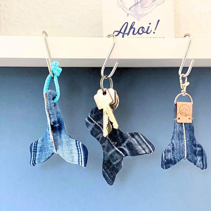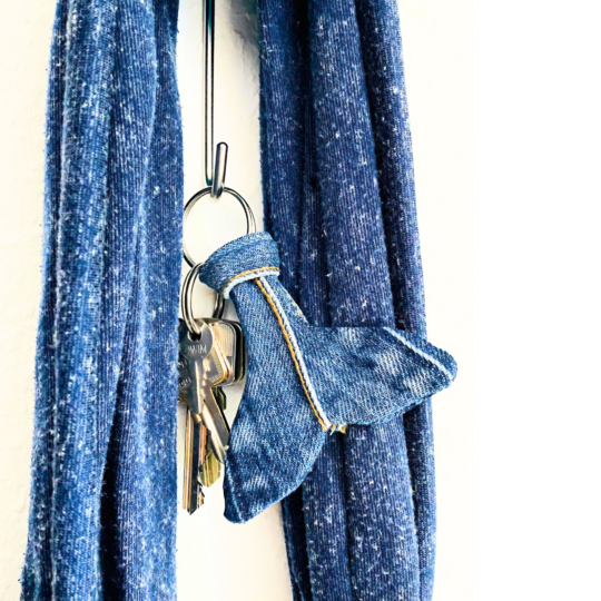 A simple sewing project for upcycle old jeans. You learn how to upcycle the jeans waistband into a keychain.