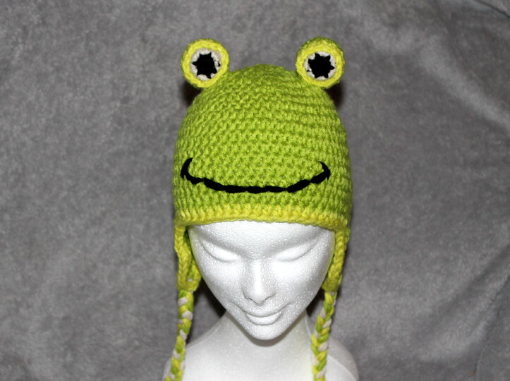 This frogs hat looks cute on a child head, as well as on a grown ups head.