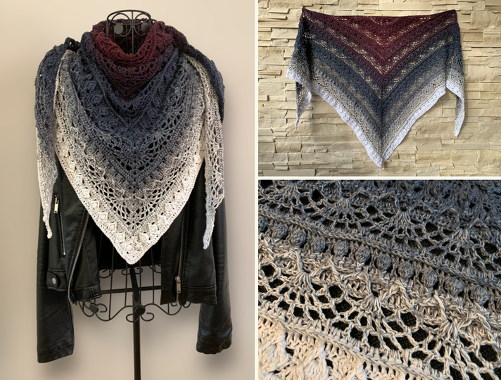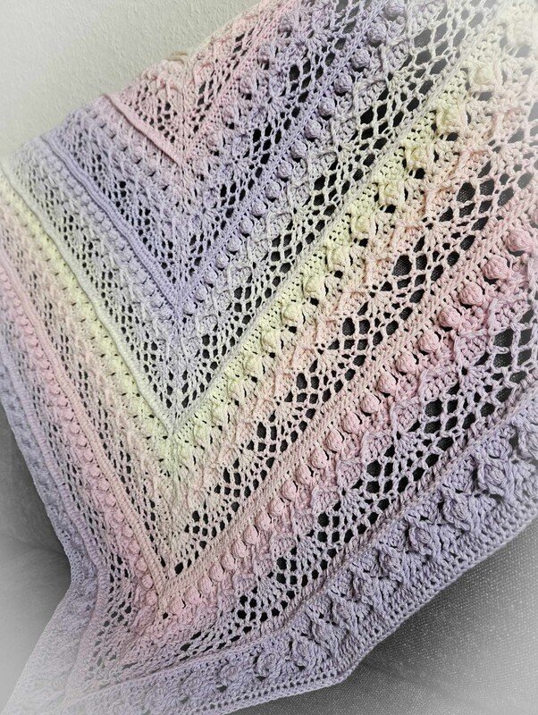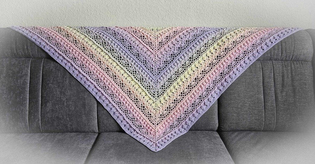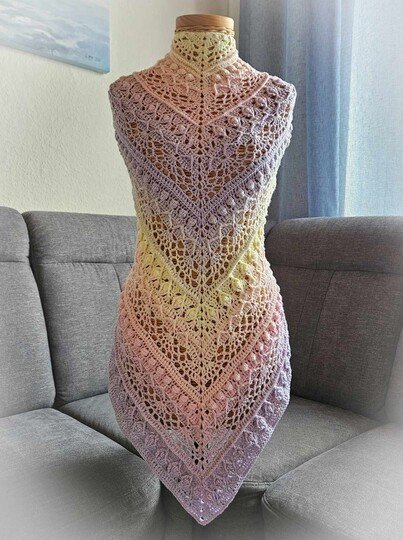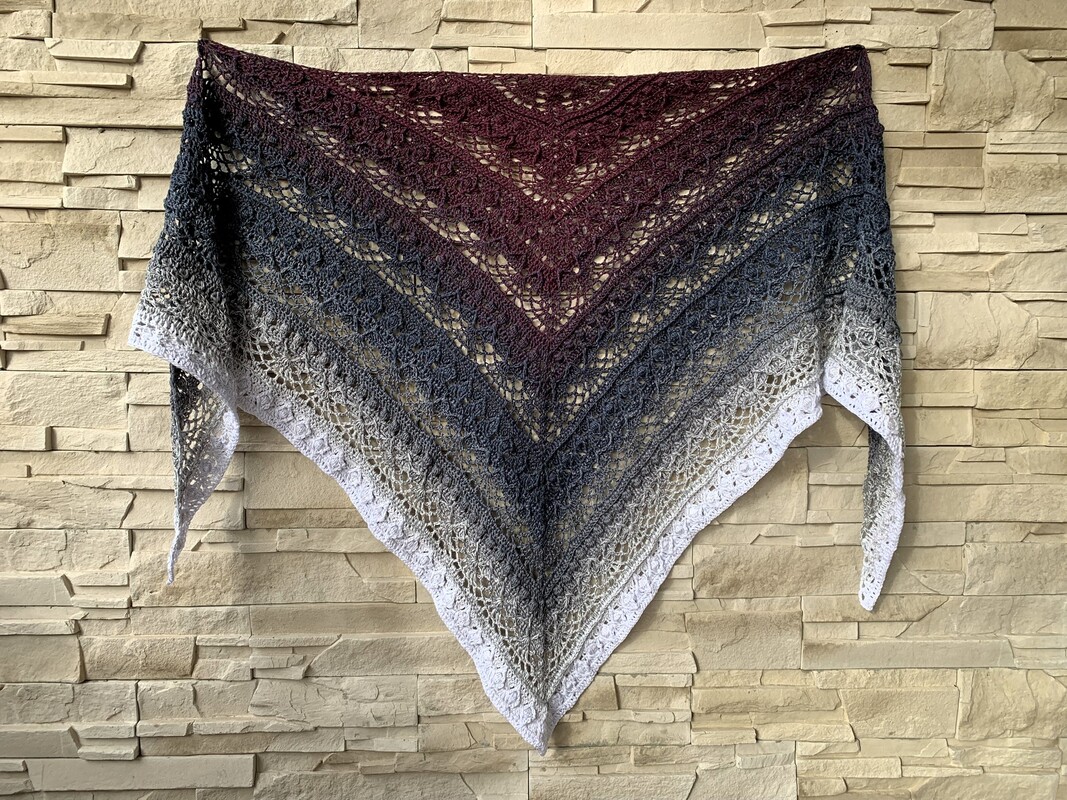 Chalastre is a bautiful triangular scarf with lots of different patterns so that you will not get bored while crocheting.