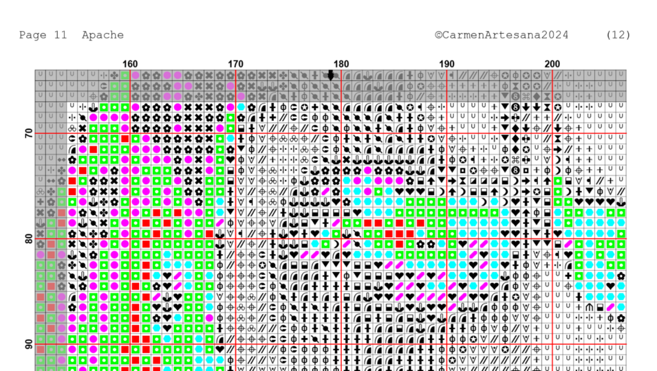 You must have basic knowledge of the cross stitch technique. This graph does not have half points or linear points, it only has full crosses.