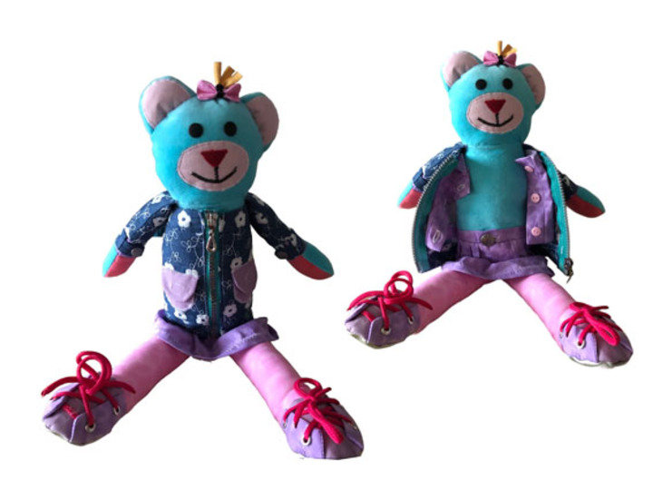 Children first need to learn fine motor skills, which help them develop finger strength for everyday tasks. The motor skills bear helps them learn playfully how to tie shoelaces, open and close a zipper, and fasten and unfasten buttons, a jeans button, snap fasteners, and Velcro. Additionally, the bear is a daily companion for cuddling and playing. The motor skills bear can be sewn in both a girl’s and a boy’s version. Both bears have a size of approximately 18,90 in.