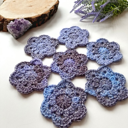 The pattern is simple enough for advanced beginners who want to try the join-as-you-go technique and create easy but lovely little flower motifs.