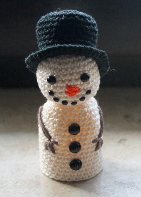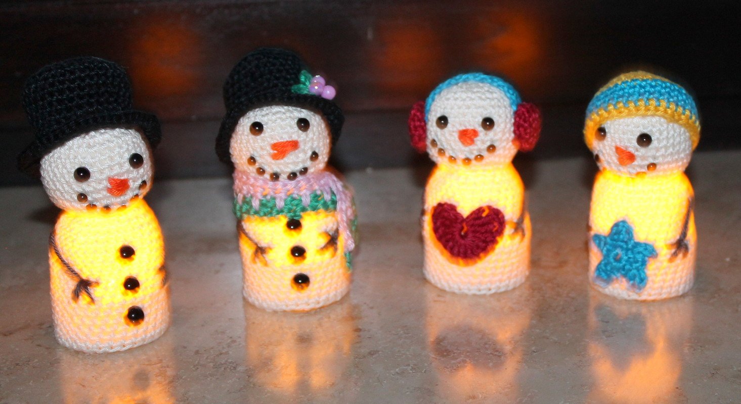 The snowmen are, matching the time of year and the angels, illuminated as well.