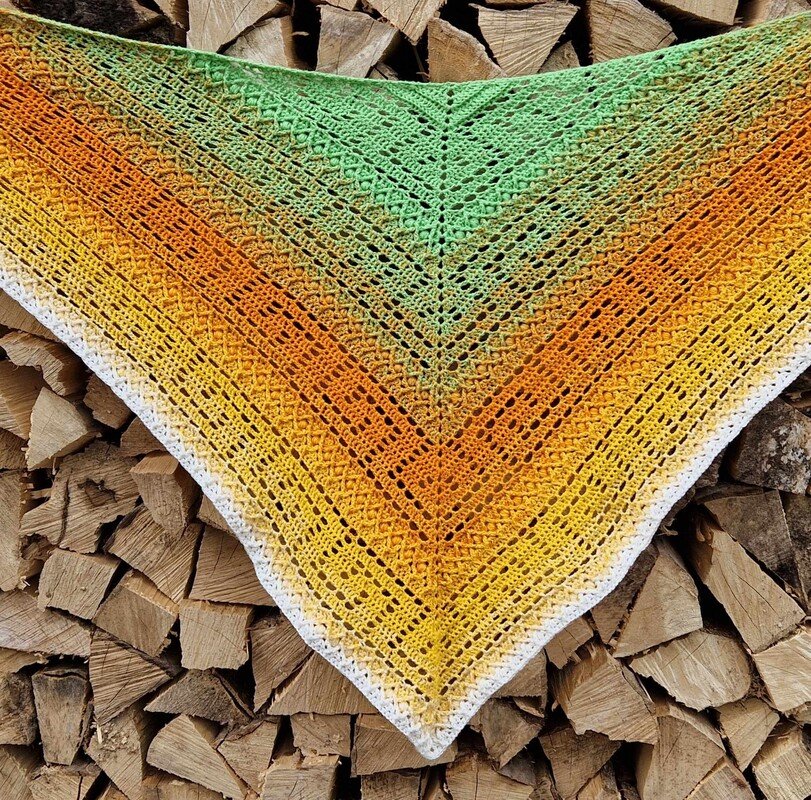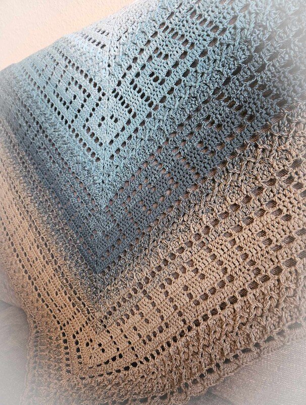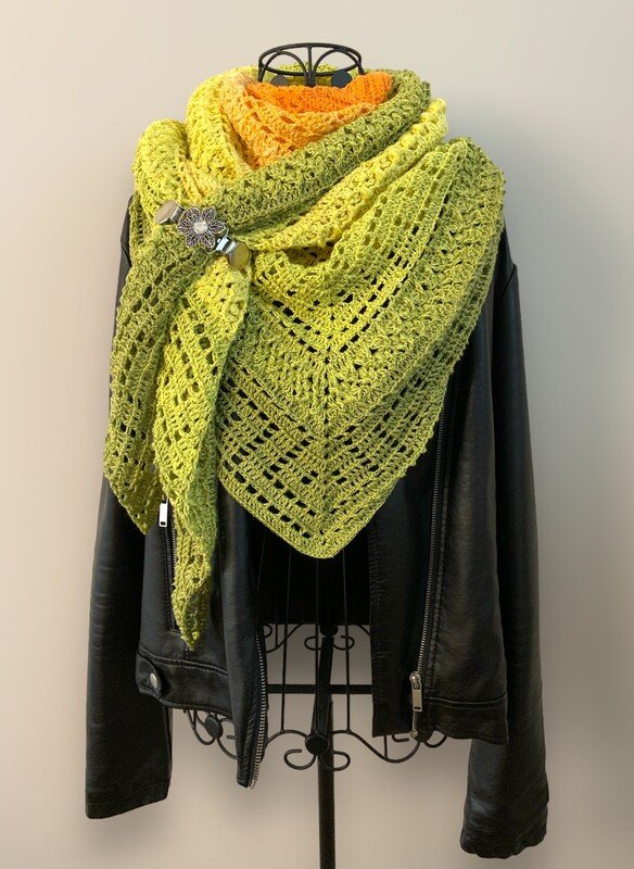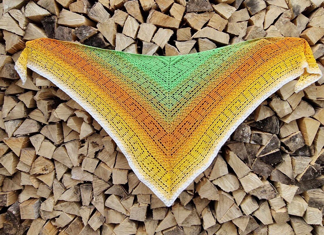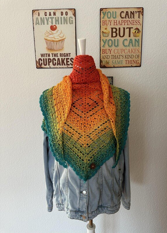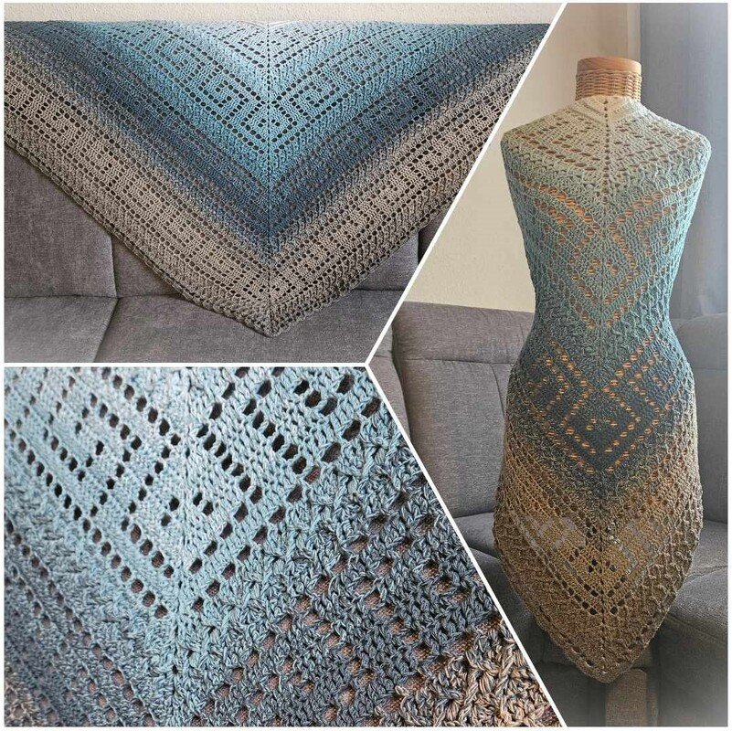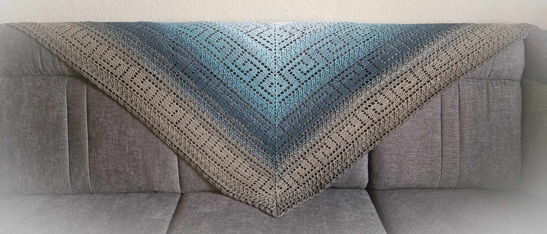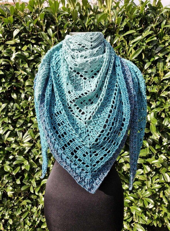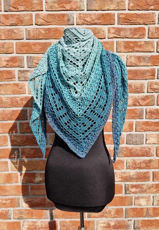 With this pattern you can crochet the beautiful triangular scarf "Olympia". As the rows repeat, you can crochet the scarf in any size, depending on your preference.