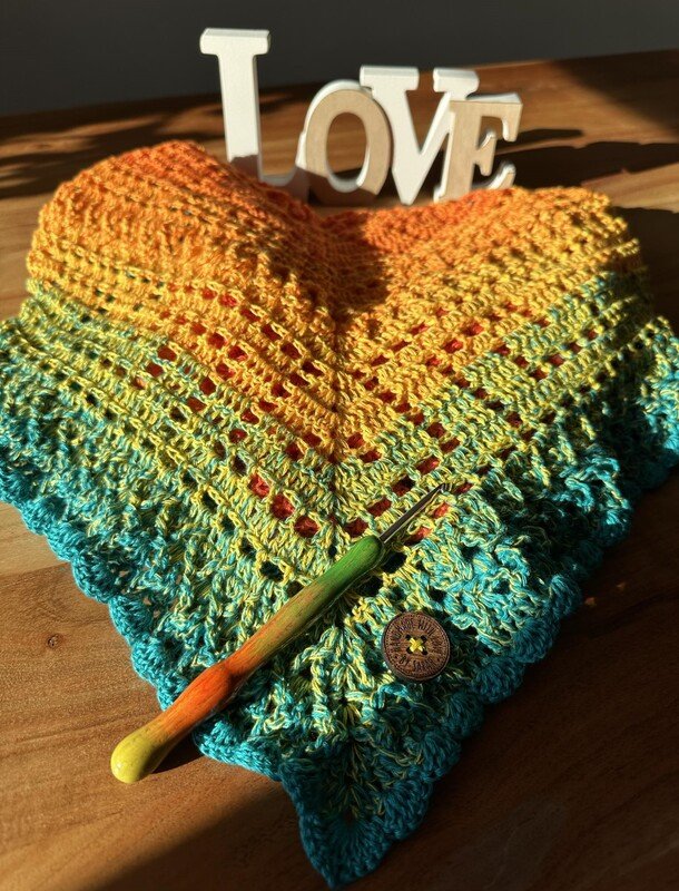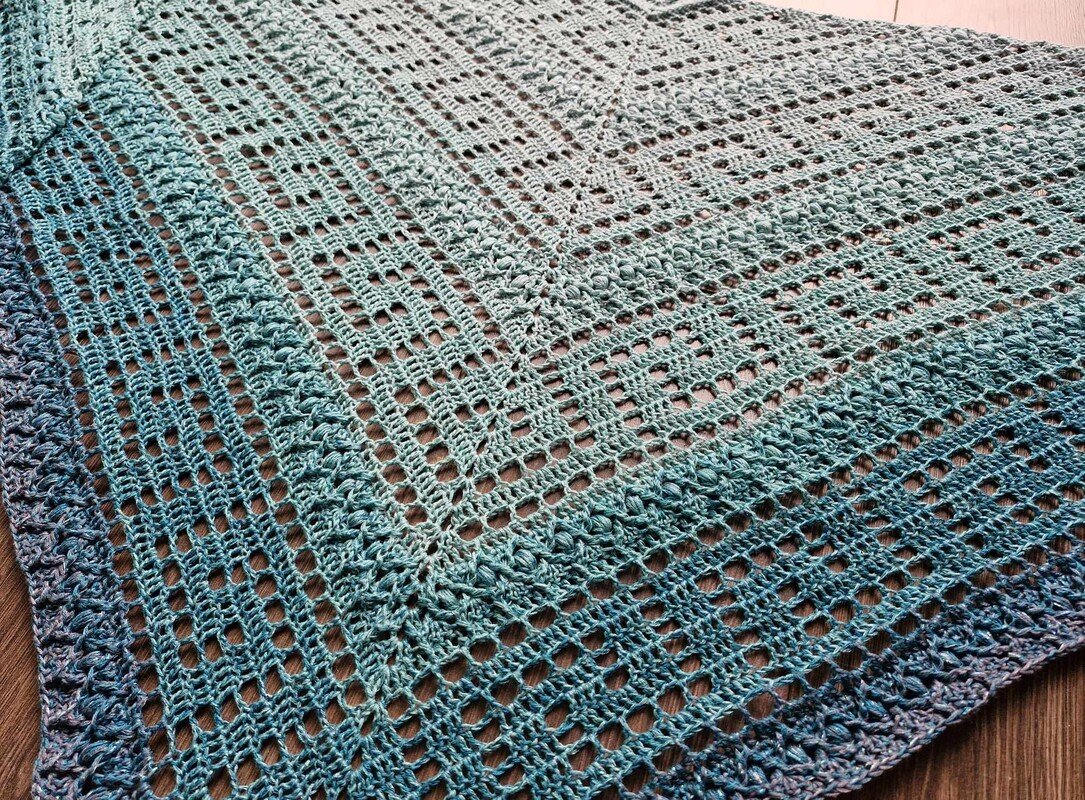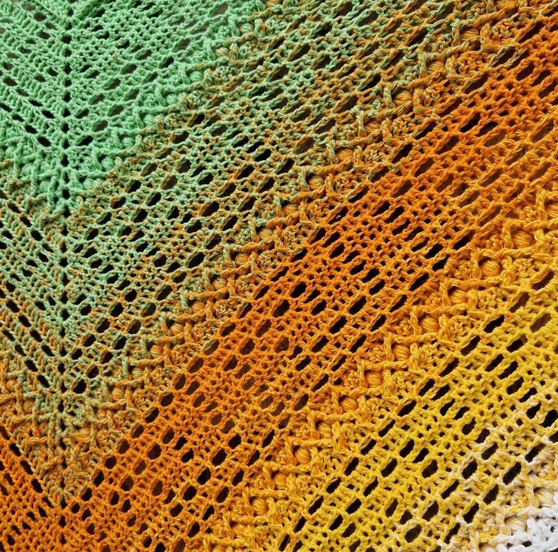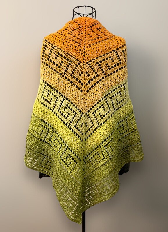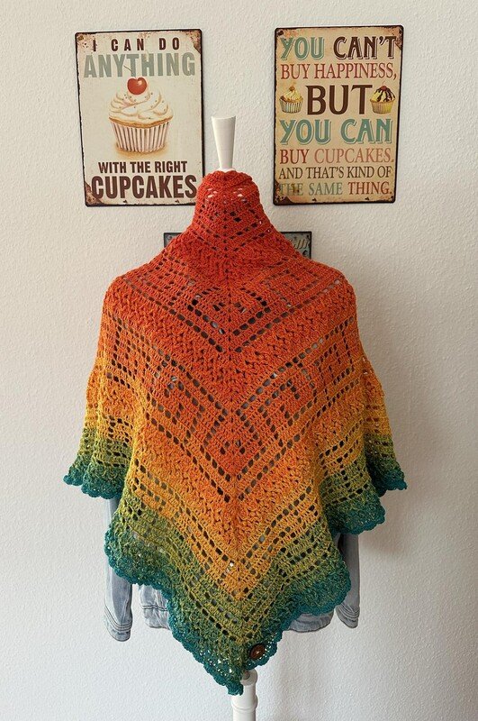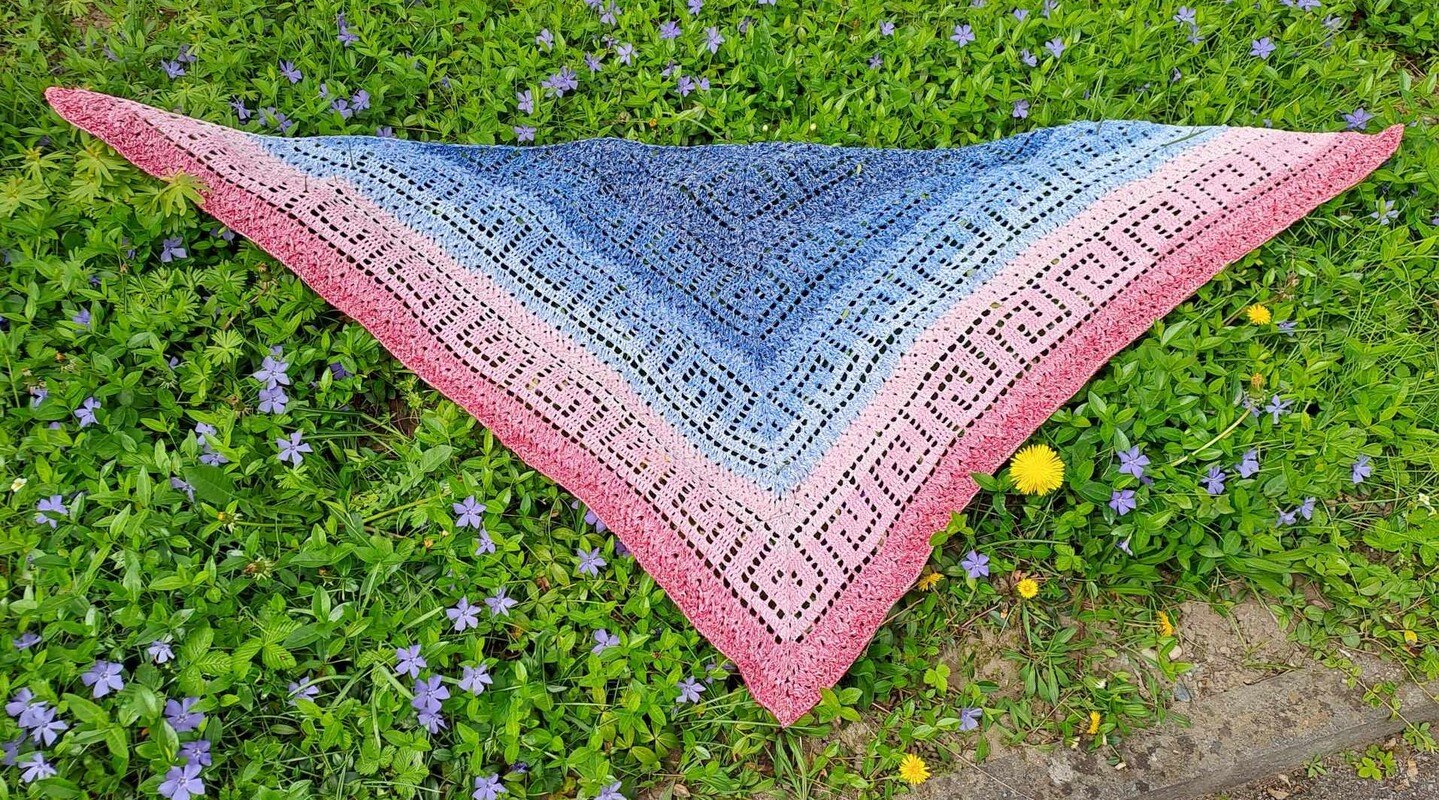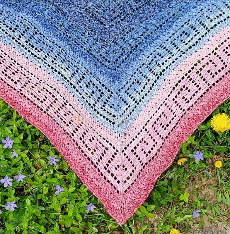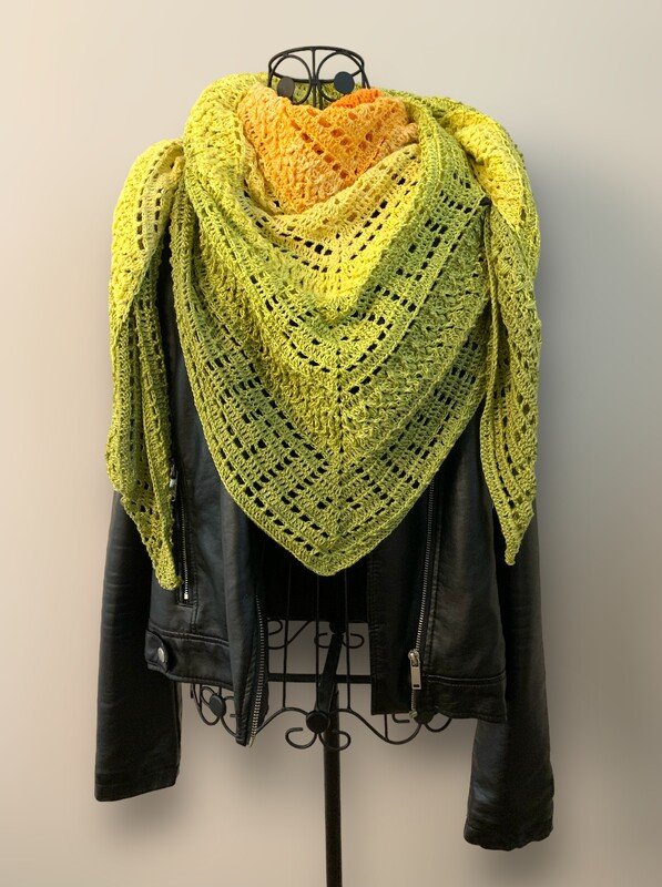 With this pattern you can crochet the beautiful triangular scarf "Olympia". As the rows repeat, you can crochet the scarf in any size, depending on your preference.