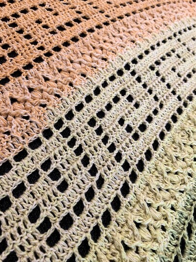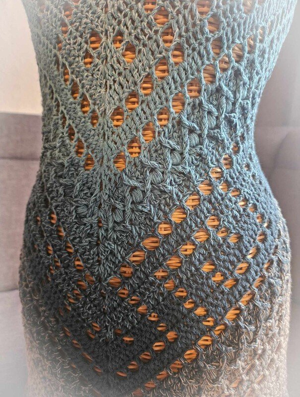 The scarf shown on the main picture has following dimensions: 190 x 90 cm. The scarf can be crocheted in any size as rows repeat. Please note, depending on hook size, used wool and your crochet tension, the size may vary.