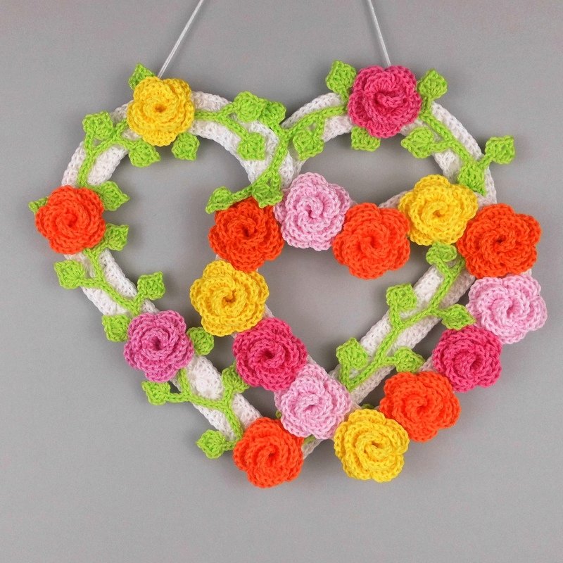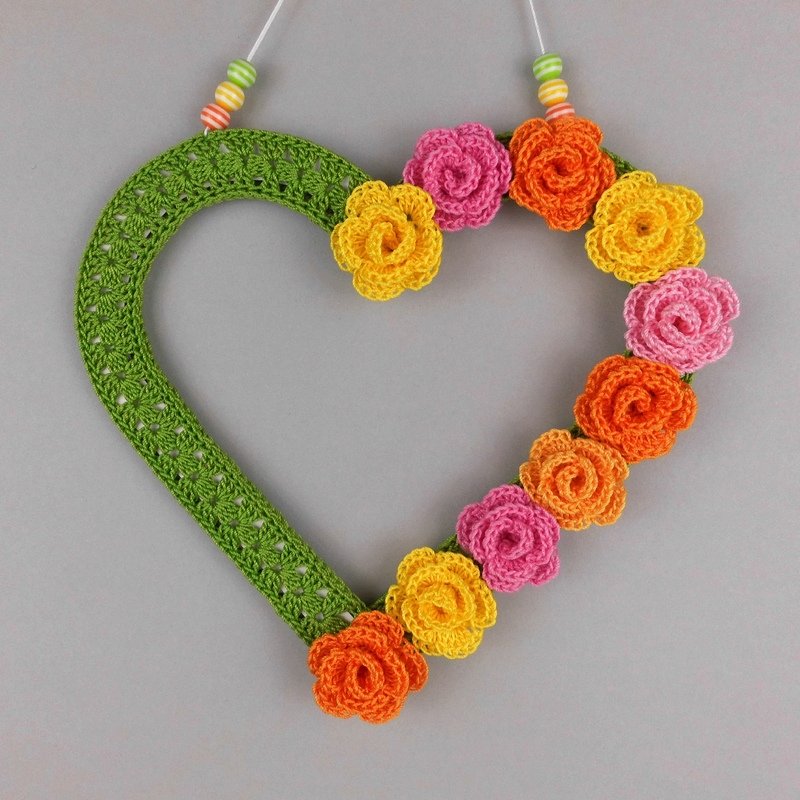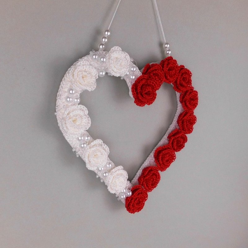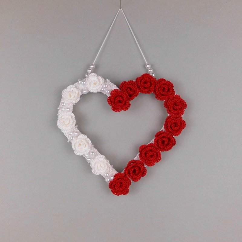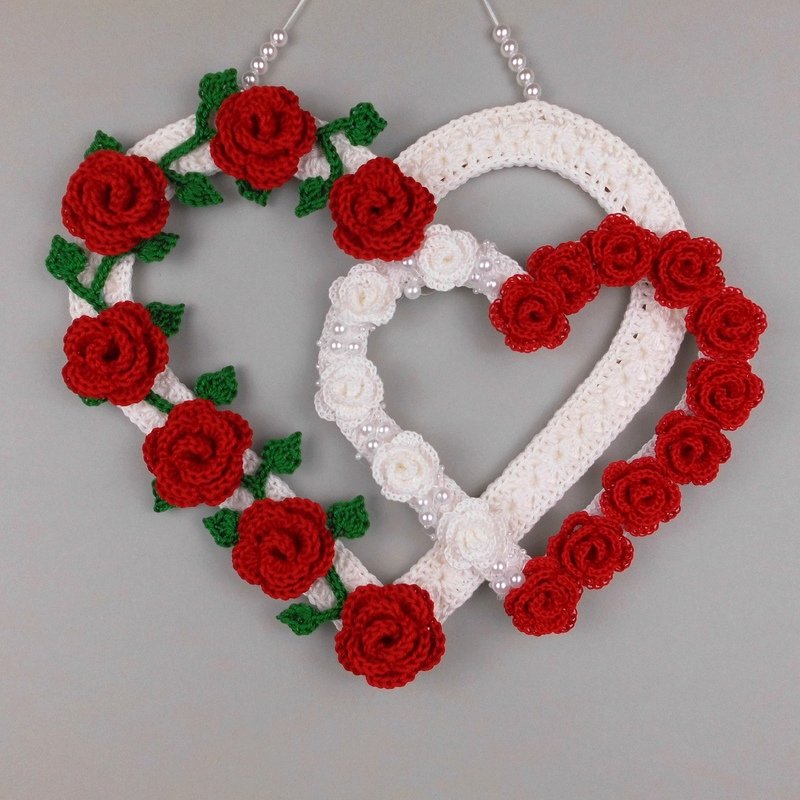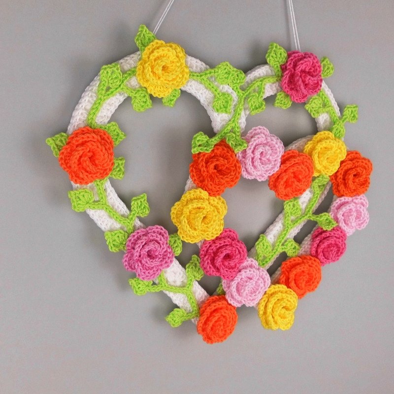 In addition to the written crochet explanation, the PDF crochet pattern also includes the crochet charts for the heart, the roses and the leaf tendrils, as well as many detailed and explained step-by-step photos so that you can recreate this beautiful decoration with heart successfully and easily.