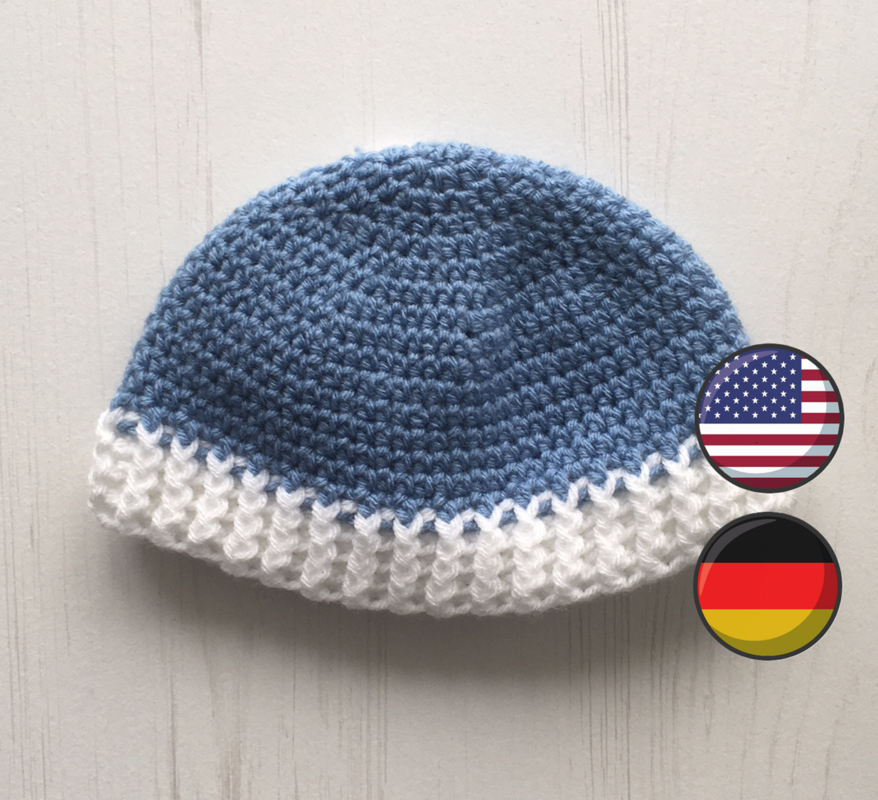 With these crochet instructions, you can crochet the baby hat yourself. The finished hat can be decorated with appliqués, for example. The instructions for the appliqués shown in the pictures are available separately in the store.