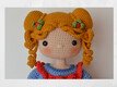 The pattern contains a lot of detailed step-by-step photographs along with full pattern instructions and tips for crocheting. ELIZA is crocheted from the bottom of her feet to the top of her head as one piece, even the arms are joined to the body. Only the dress of the doll are removable. All other clothes are fix connected with the doll.