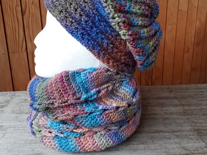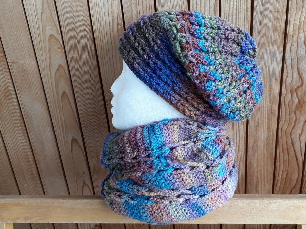 Mein Tipp: Häkle erst die Mütze und dann den Loop! Damit Dir nicht bei der Mütze die Wolle ausgeht ;-)