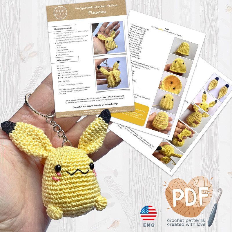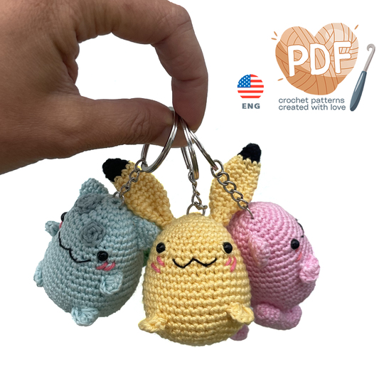 Discover my Anime Keychain Amigurumi Crochet Patterns! This adorable Poke Set Crochet Pattern is perfect tutorial for beginners, easy to follow and super fun to make. Craft cute baby Electric Mouse with friends for a unique DIY gift for anime lovers, kids or charming decoration. Start to make it now and unleash your creativity with these delightful Anime Poke pals!