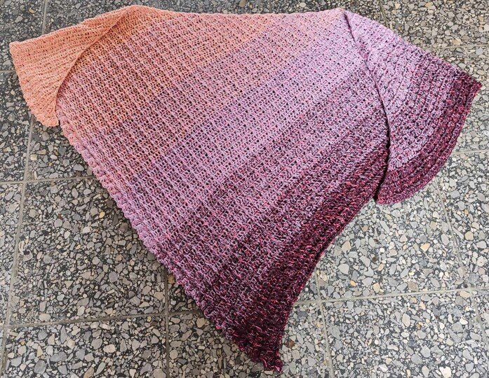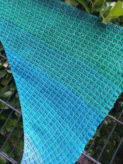 Ich habe in meiner Facebookgruppe gefragt, welche Art der Anleitung gewünscht wird. Herausgekommen ist, asymmetrisch wäre schön. Und tatsächlich habe ich bisher noch kein solches Tuch entworfen.