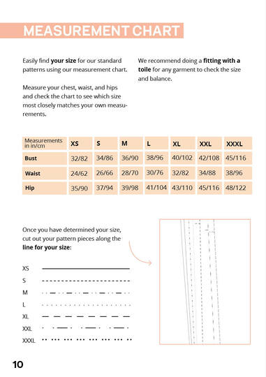 Sizes XS-XXXL are included in the pattern. The exact measurements of the sizes can be found in the size chart in the pictures. For reference: Our model Dayami is 175cm (5′ 9.3″) tall and wears size XL.