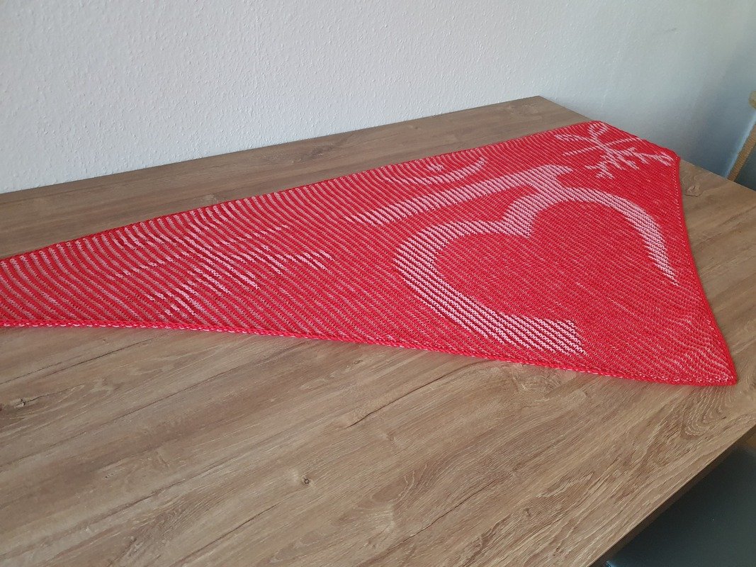 This pattern guides you step by step through creating a unique motif shawl, using the technique of shadow or illusion knitting. With this special method, the motif only becomes visible when viewed from the side – a striking effect with real wow-factor!