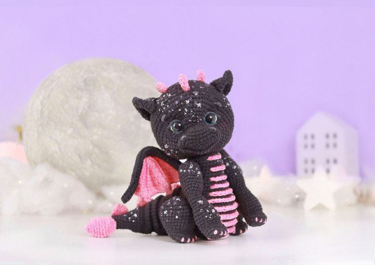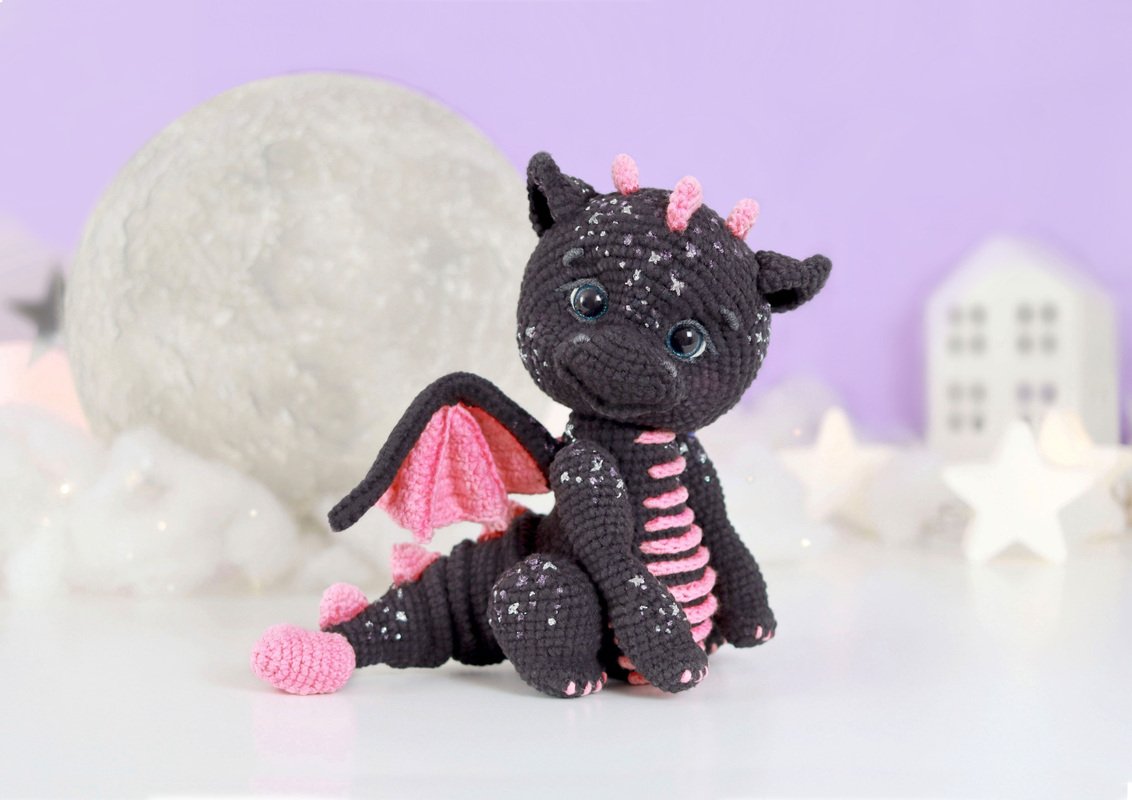 The black and blue dragon are crocheted according to one and the same