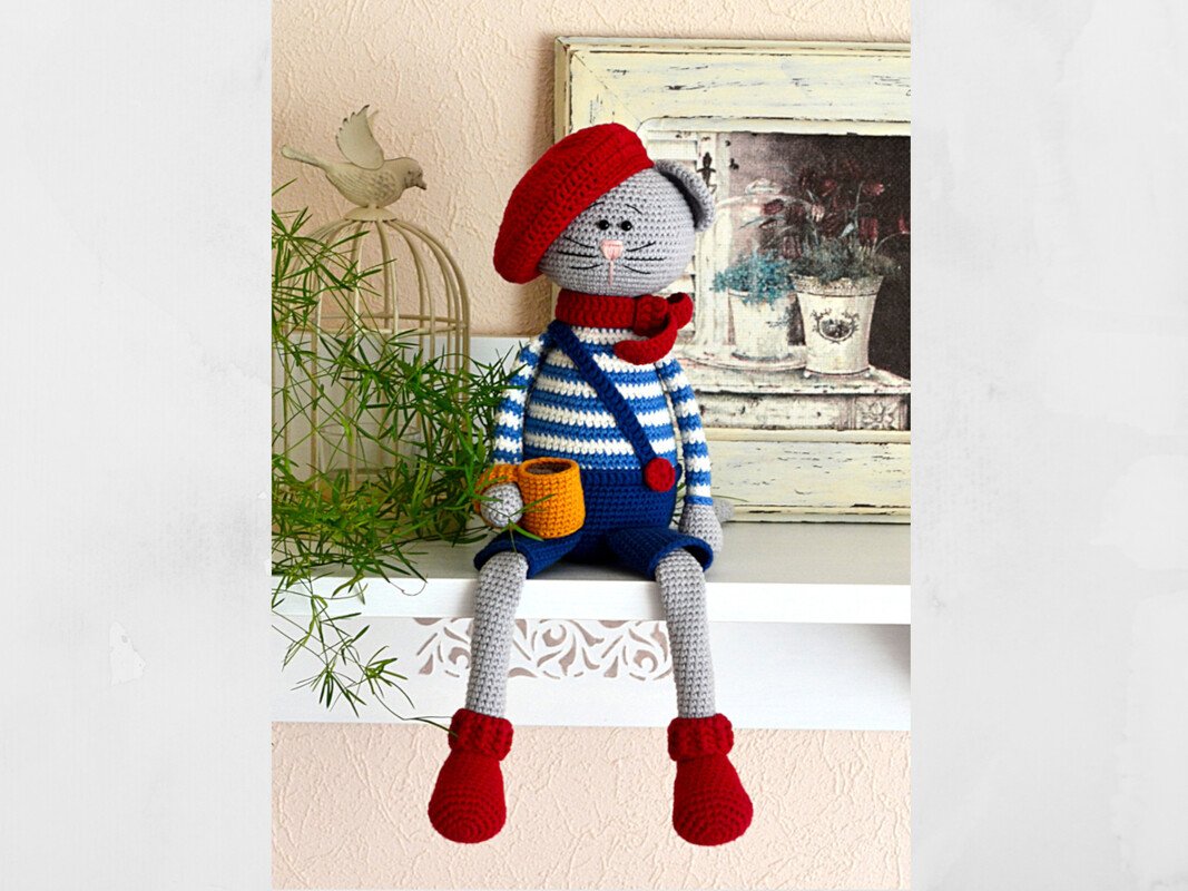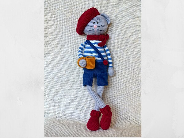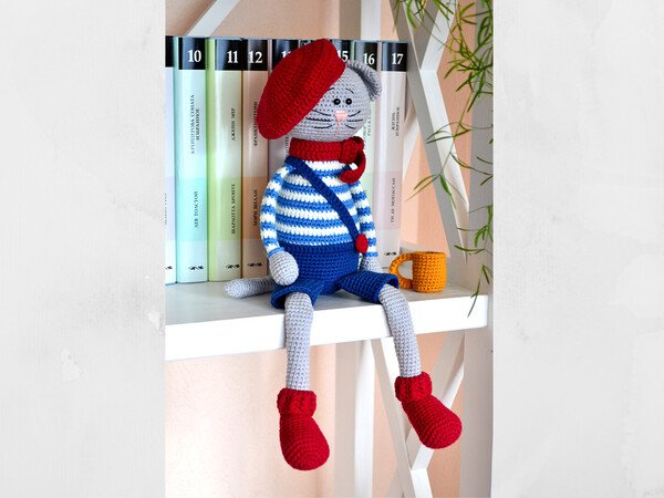 Finished size of the cat is going to be approximately 34 cm (13,4") from ear to toe and 19 cm (7,5") when seated.