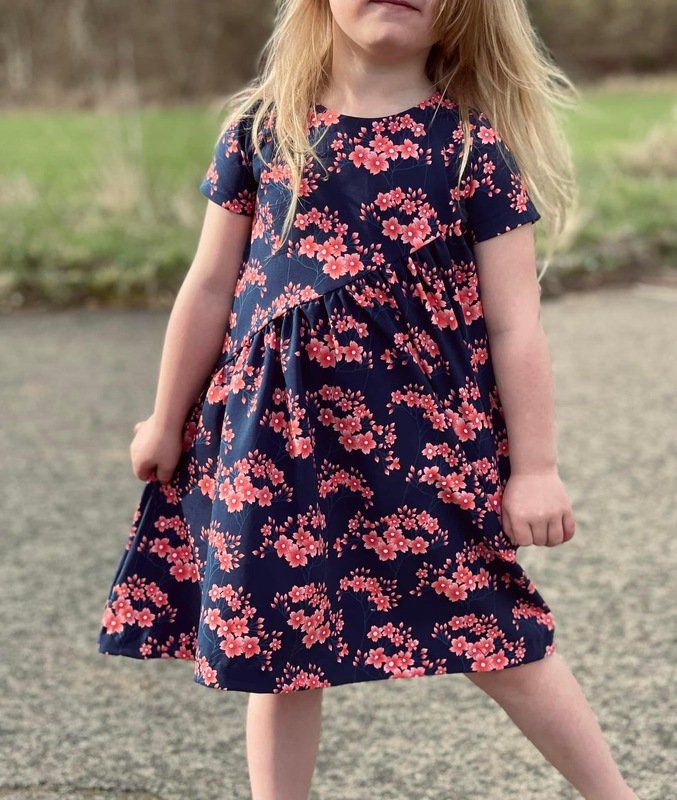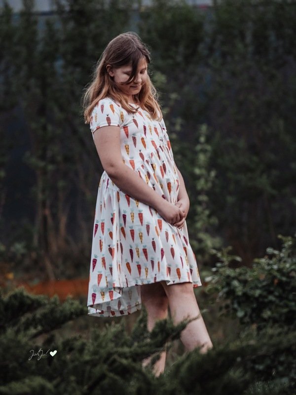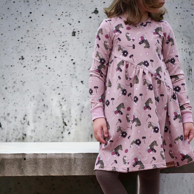 Der Halsausschnitt vom Style Dress wird mit einem Beleg oder mit Halsbündchen genäht. Bei den Ärmeln kannst Du zwischen langen oder kurzen Ärmeln wählen, die langen Ärmel können wahlweise gesäumt oder mit Ärmelbündchen genäht werden.