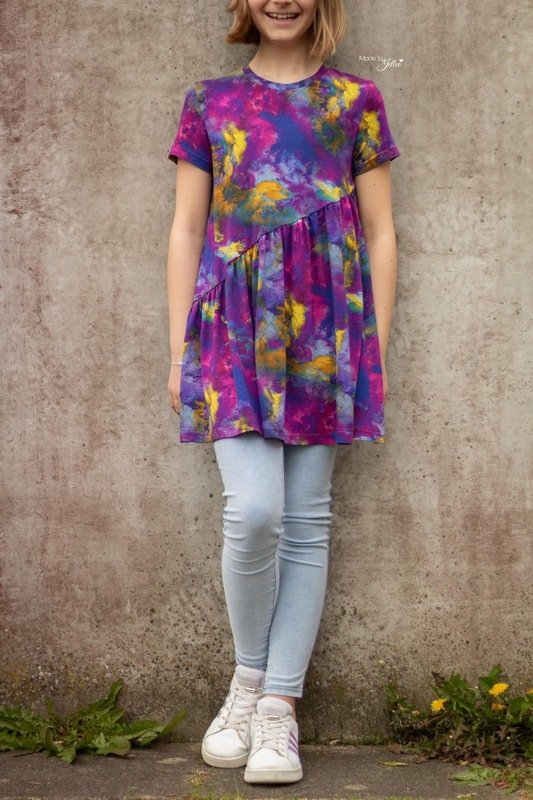 Es bietet verschiedene Varianten und ist zahlreich kombinierbar. Als Tunika zur coolen Jeggings, als Kleid zur Leggings oder im Sommer als kurzärmeliges Kleid.