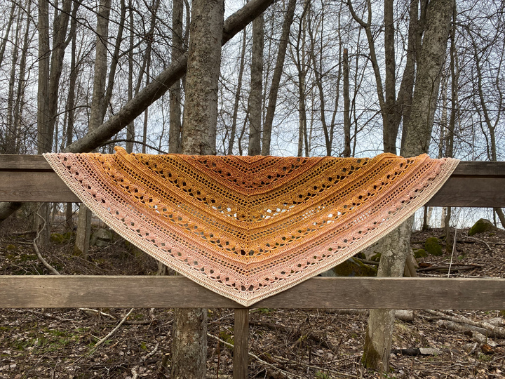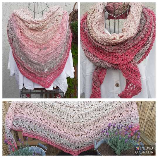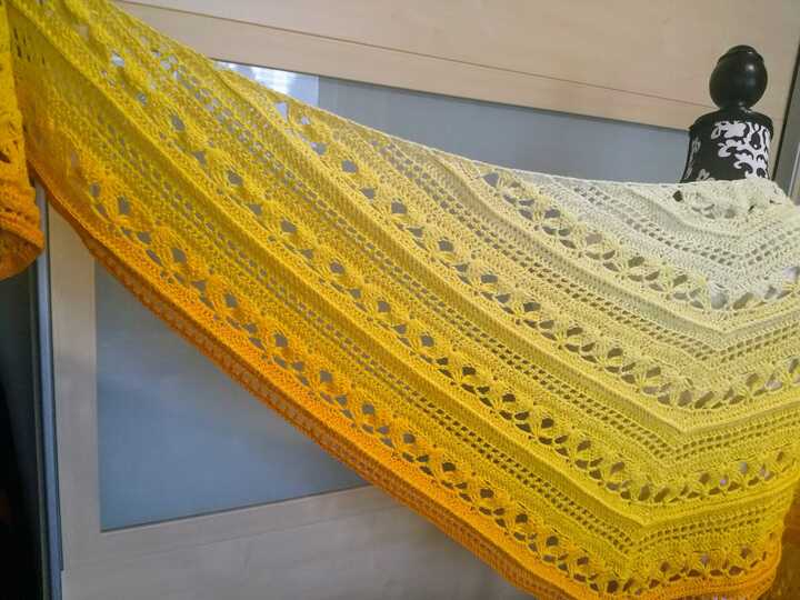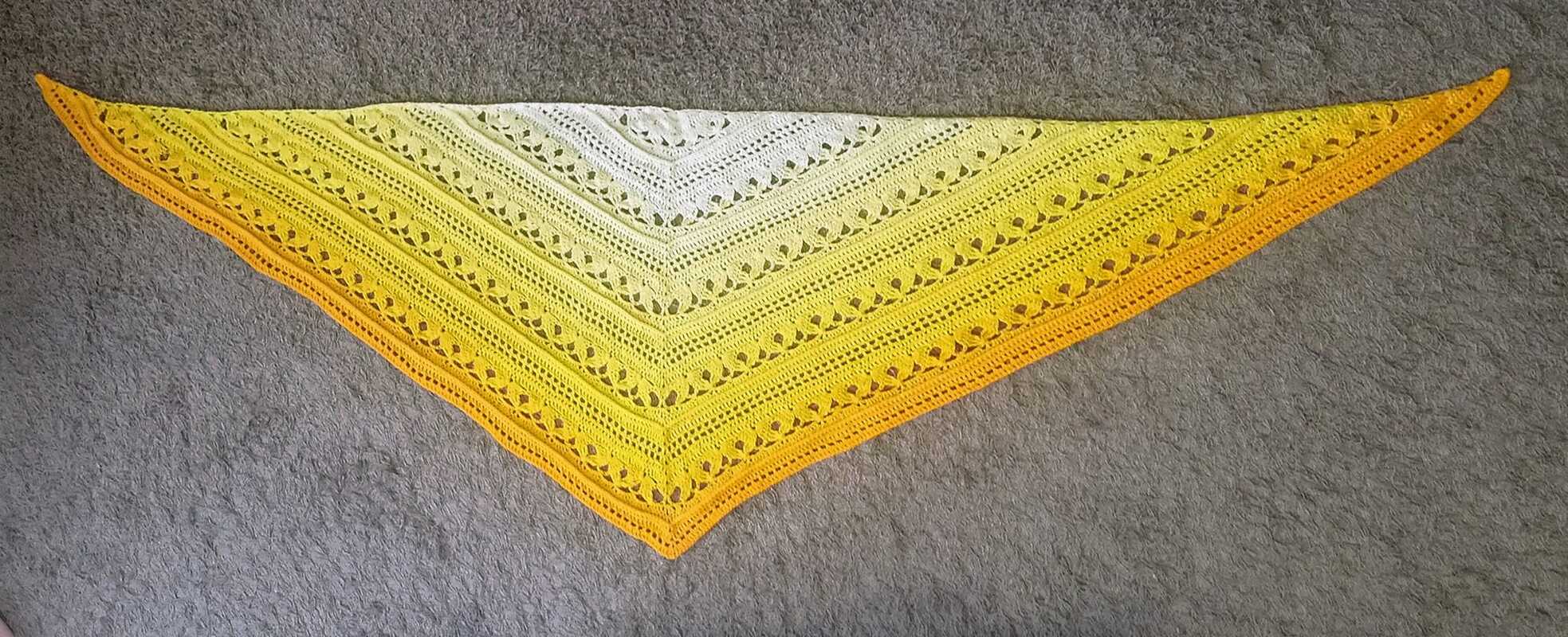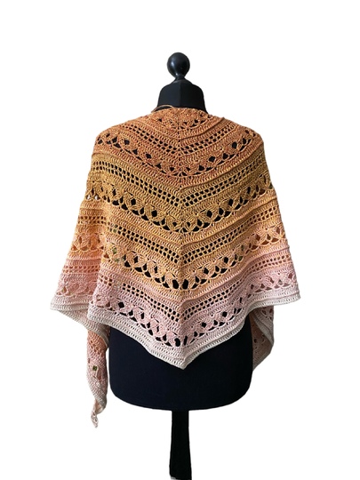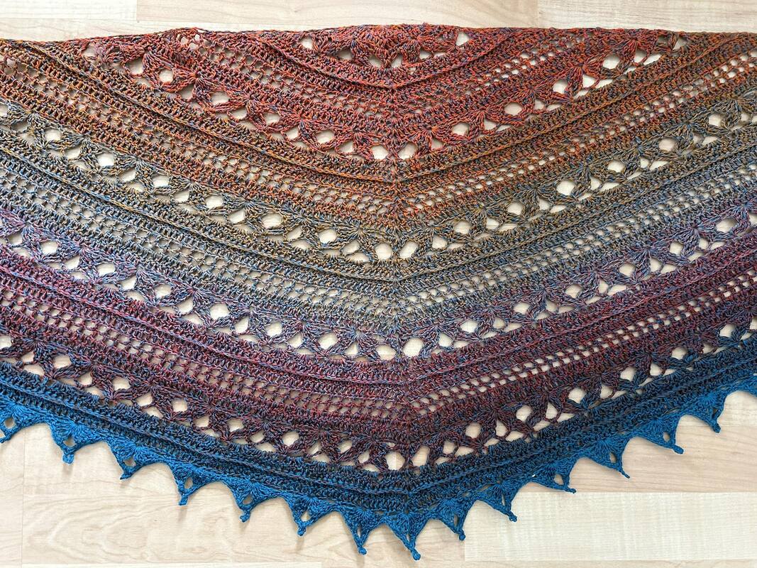 The Iuliel is a not so deep, but wide and symmetrical triangular shawl.