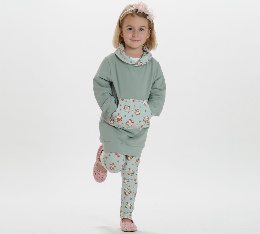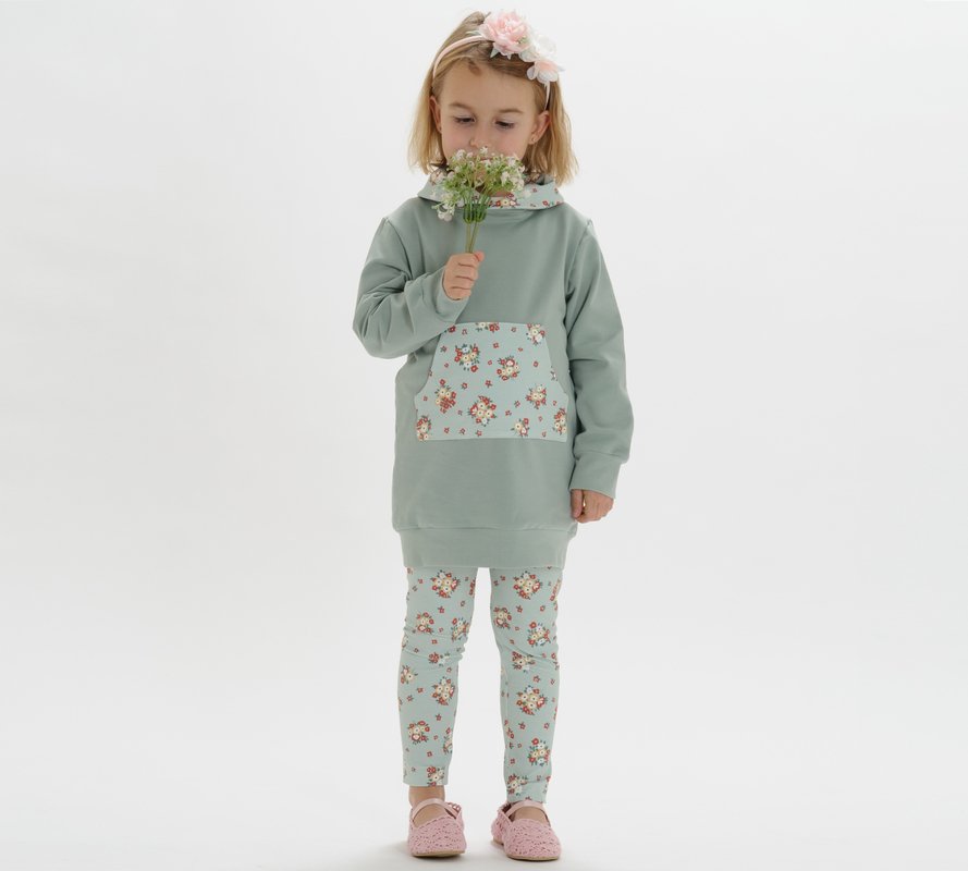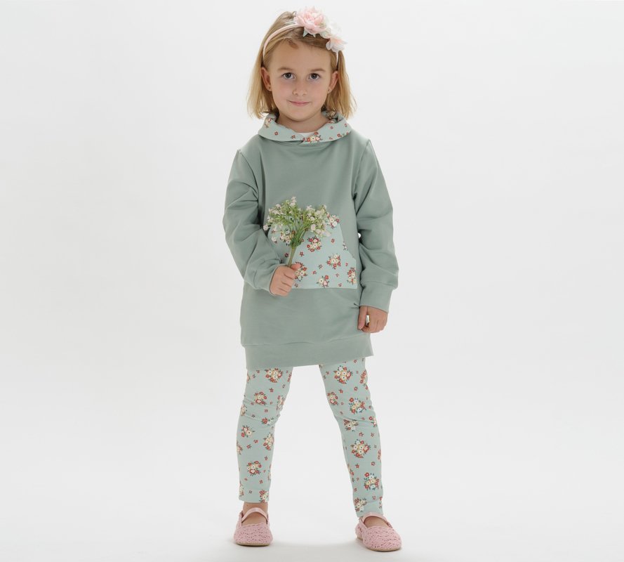 With the “Arwen and Enna” sewing pattern set you can make a cozy, stylish kids outfit: a comfortable tunic with two neckline options plus matching leggings. Great for playground, school, or relaxing days at home. The pieces are easy to mix and match and can be worn all year round.