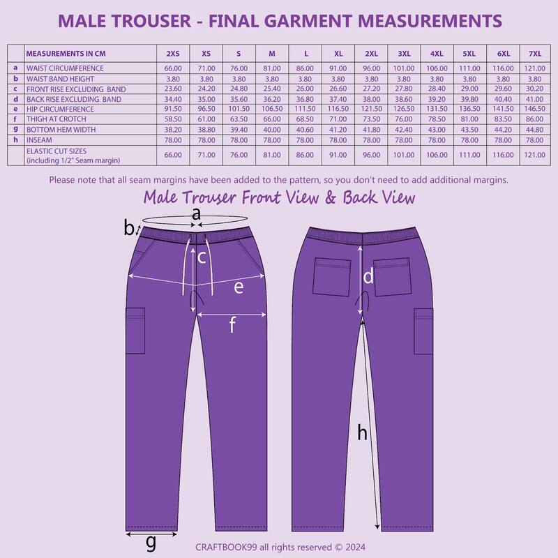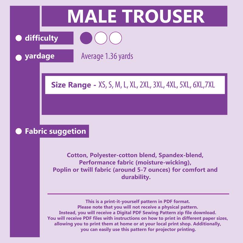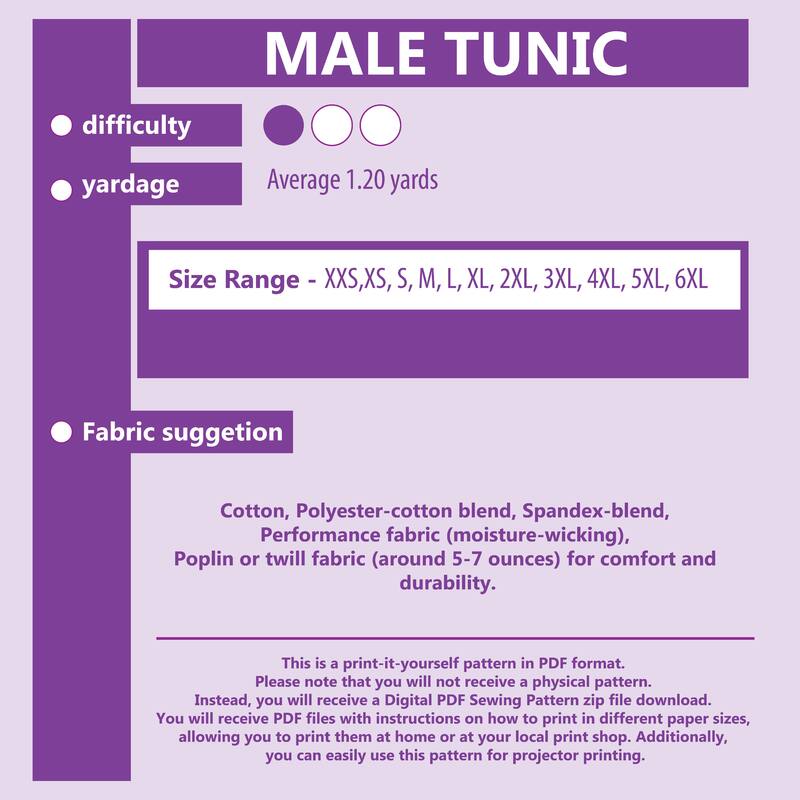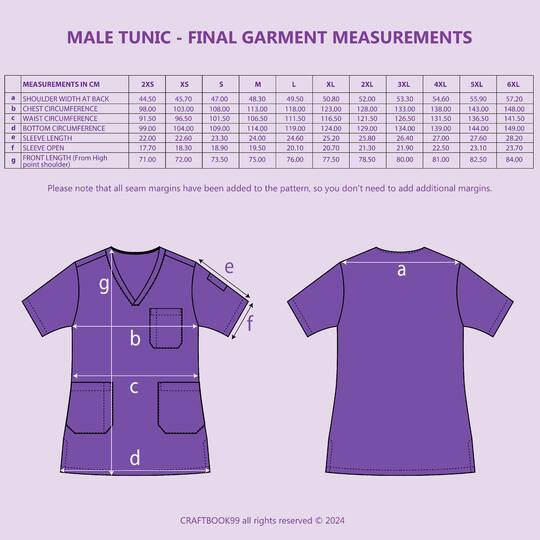 Mens Scrub Set PDF Sewing Pattern in sizes XS, S, M, L, XL, 2XL, 3XL, 4XL, 5XL, 6XL, 7XL for instant download. See the size chart in the product gallery and your instruction sheet to choose the correct size.