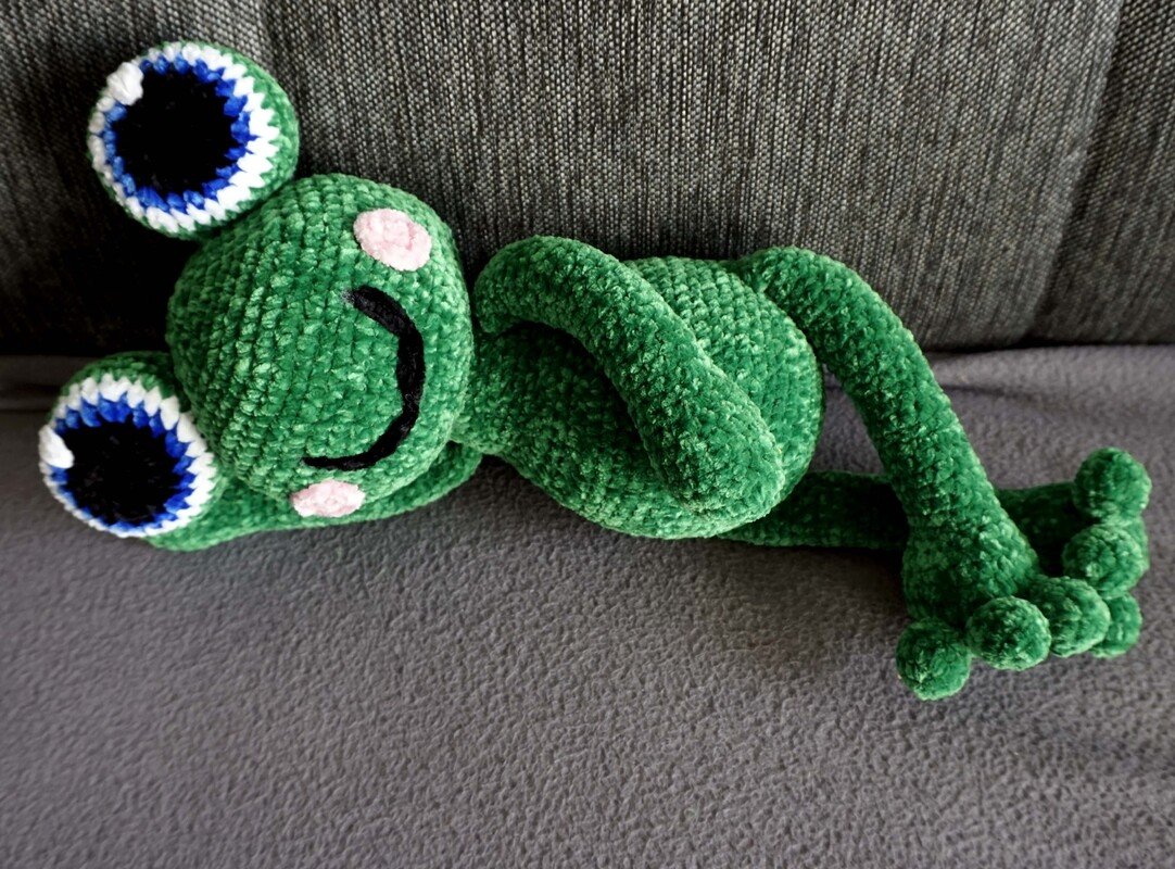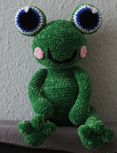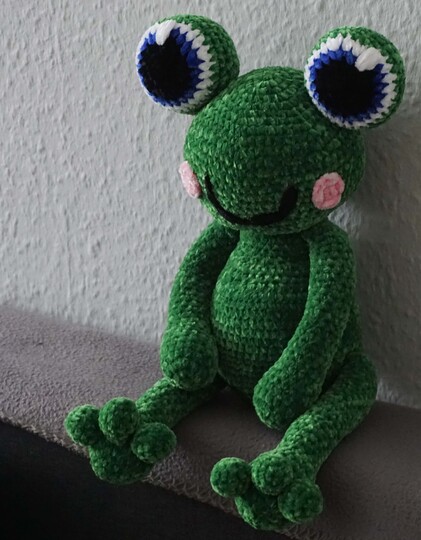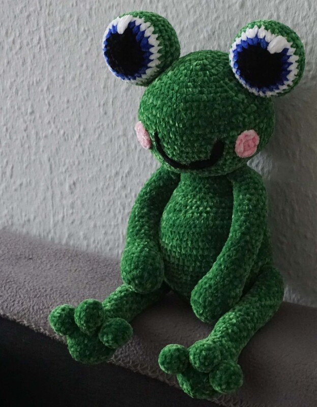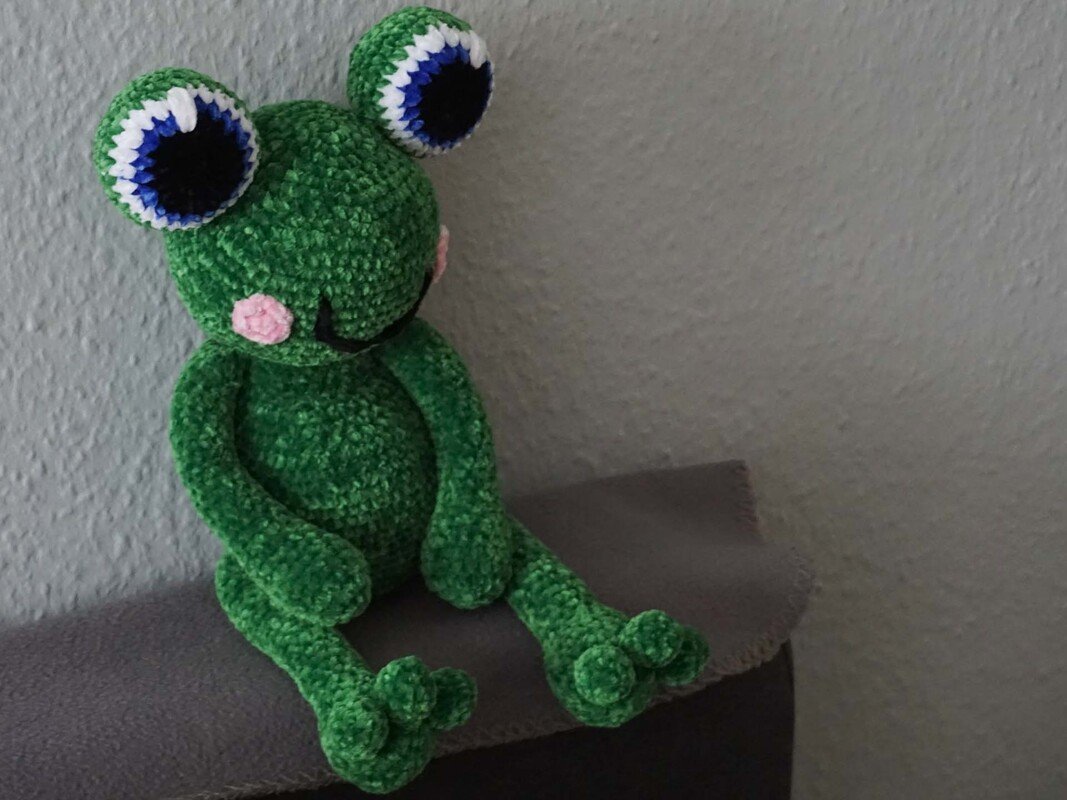 Discover the joy of crocheting with our instructions for the adorable frog Quaki, made from cuddly chenille wool.