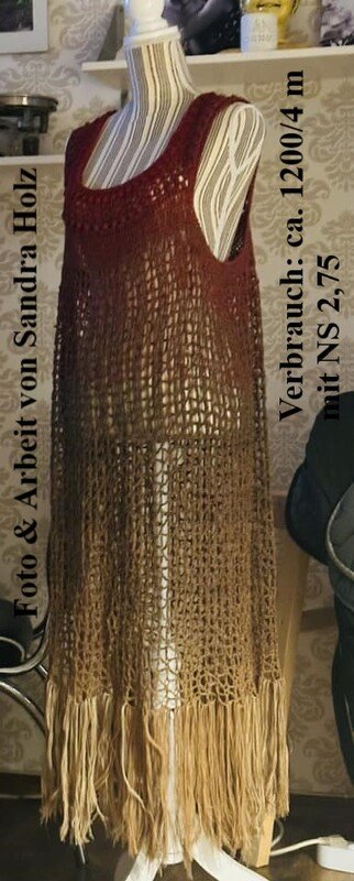 Dieses Strandkleid ist einfach zu arbeiten und auf alle Größen anwendbar. Auch kann die Länge auf die eigene Wunschlänge angepasst werden und mit den Fransen wird es ein Hingucker.