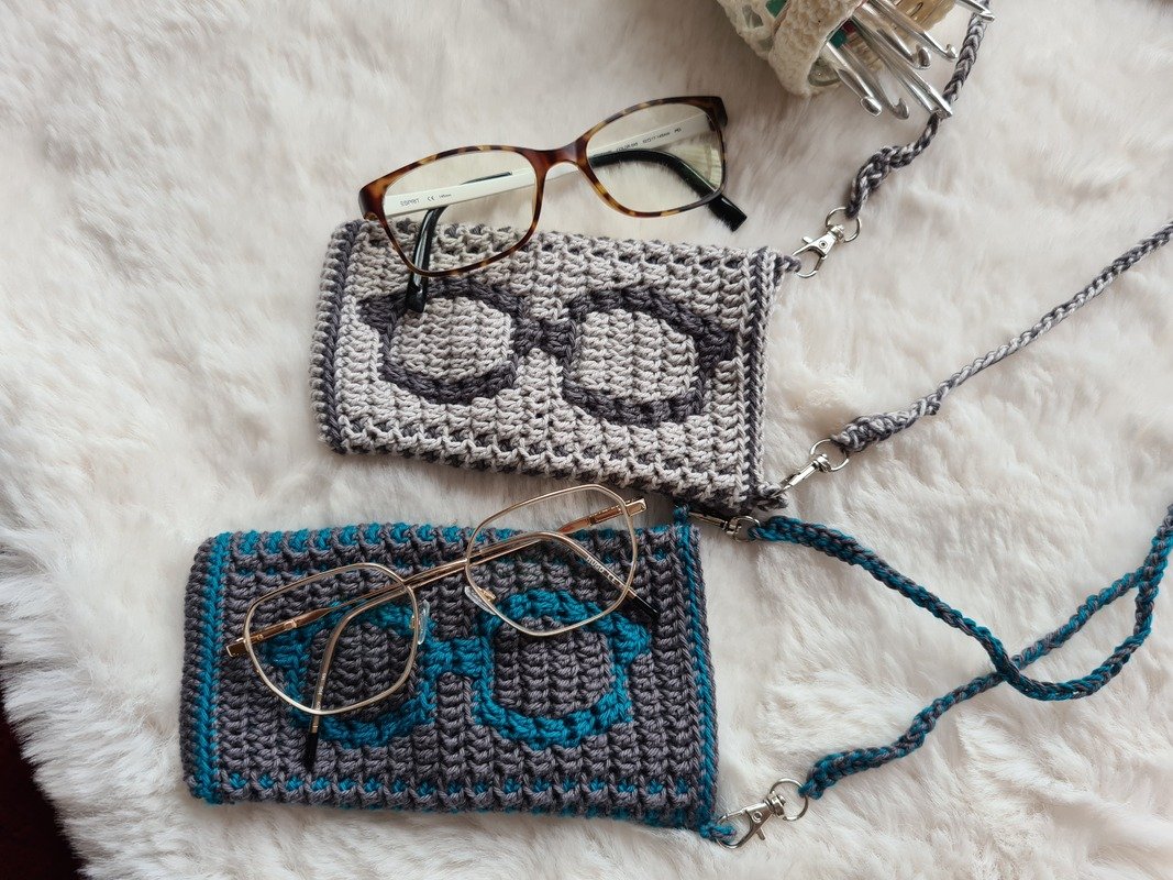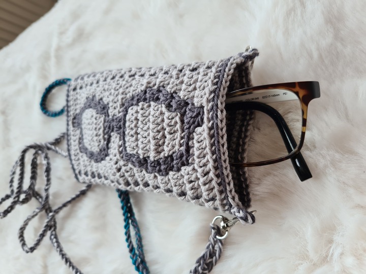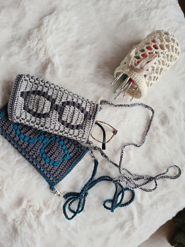 Häkelanleitung für ein Brillen-Etui mit Brillensymbol in der Overlay-Mosaiktechnik "mal anders"