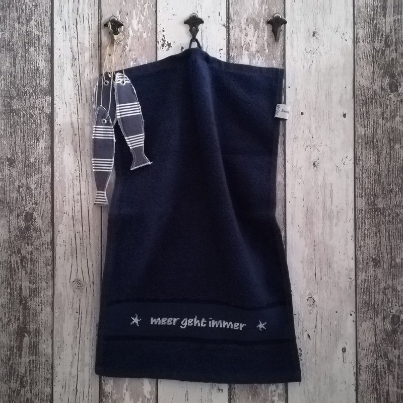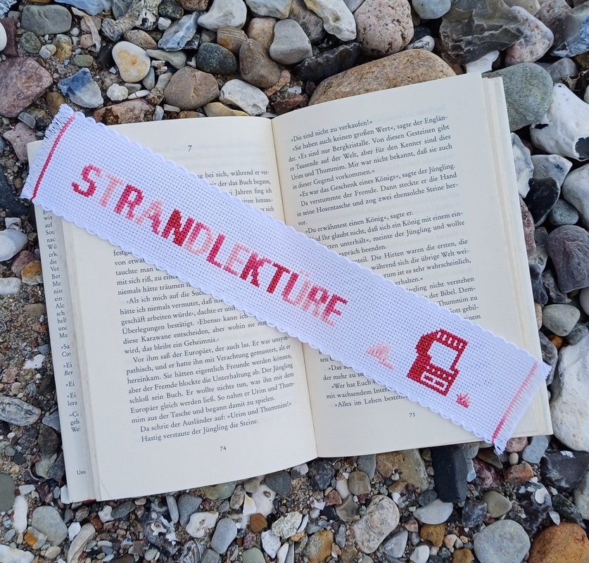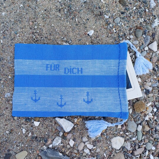 The connection to the maritime is obvious with embroidery motifs such as mermaids, anchors, sailing ships, beach chairs, fishing trawler, etc. The use of leftover embroidery thread works great with the small embroidery patterns, especially because no colors are specified. As far as the embroidery fabric is concerned, you can also dig into your leftover box. You can embroider wide linen ribbons and sew them into gift bags, make narrow embroidery ribbons into bookmarks with pretty embroidery, or use even smaller leftover fabric as patches for greeting cards. I'll show you a few examples in the photos above.