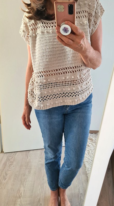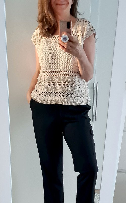 There are many ways to wear it: Light and airy in summer, as it is opaque in the right places; on cooler days over a blouse, a turtleneck, a long-sleeved shirt or a tight dress; with a skirt, jeans, long or short trousers, the top is a great addition to your wardrobe and will attract attention.