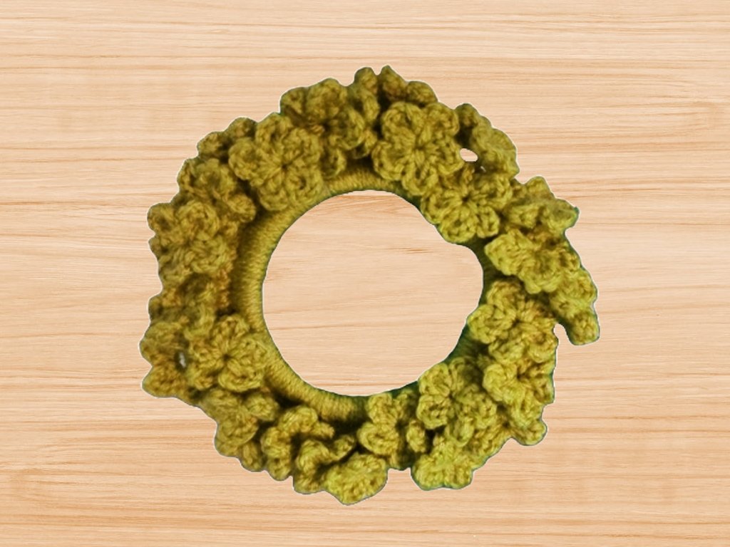 A Crochet flower Scrunchie pattern, crochet flower pattern, Floral Hair Bands, Hair Rope Ponytail Holder, Hair Scrunchie Handmade pattern: