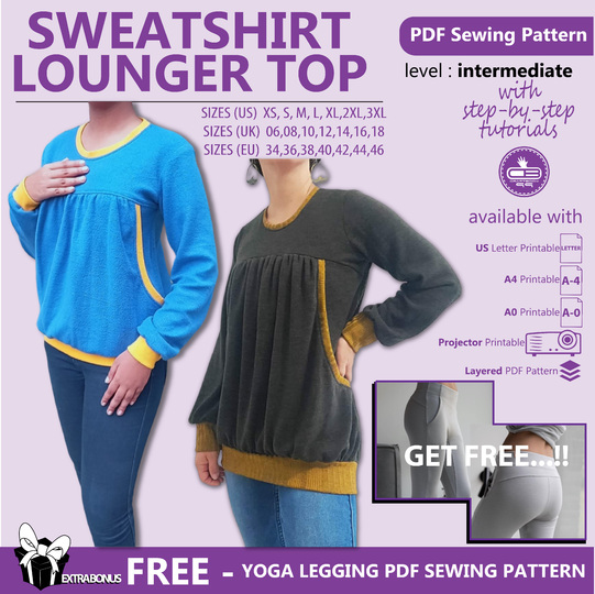 Sweatshirt Lounger Top PDF Sewing Pattern | Winter Jacket Sewing | DIY Patterns| Bundle offer free | Printable pdf
