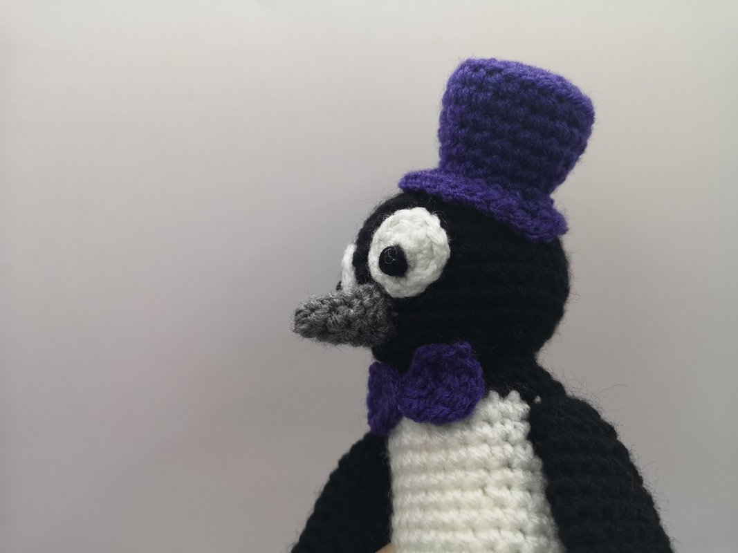 The penguin comes across as a gentleman with a top hat and bow tie. Of course, it can also be crocheted without these accessories.