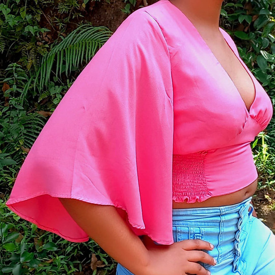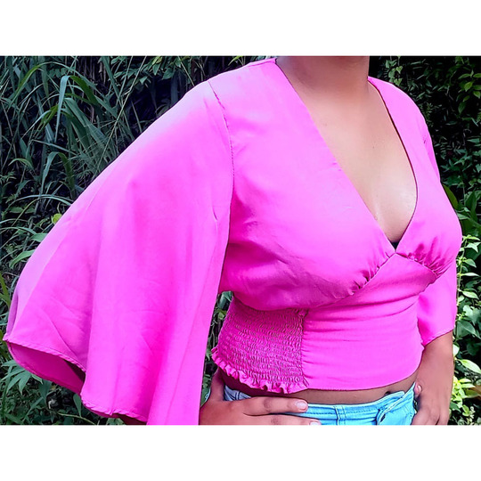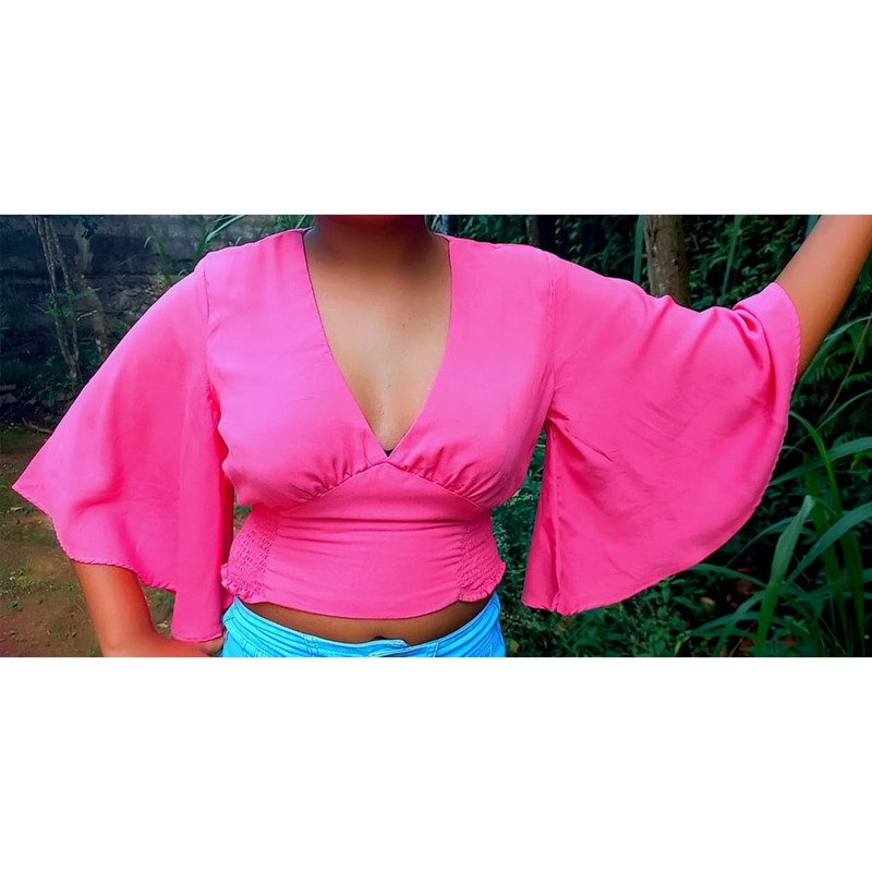 Digital-PDF Sewing Pattern for Flounce Sleeve Shirred Crop Blouse