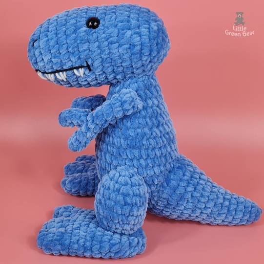 I’ve made Tom the T-Rex using a super chunky #6 weight yarn. This is ideal for a soft and huggable plush toy and is a pretty quick make. He is 11 inches tall (when made with the recommended materials).