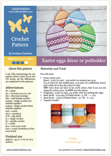 The pattern is written using USA terminology.
