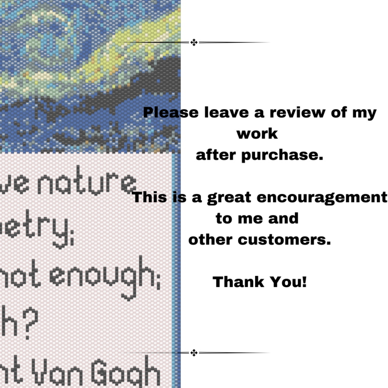 Introducing our "Starry Night Inspiration" Beaded Tapestry Pattern – a mesmerizing fusion of nature's beauty and artistic brilliance. This exquisite pattern captures the essence of Vincent van Gogh's iconic "Starry Night" painting, brought to life through the intricate art of bead weaving.