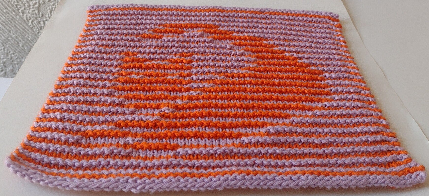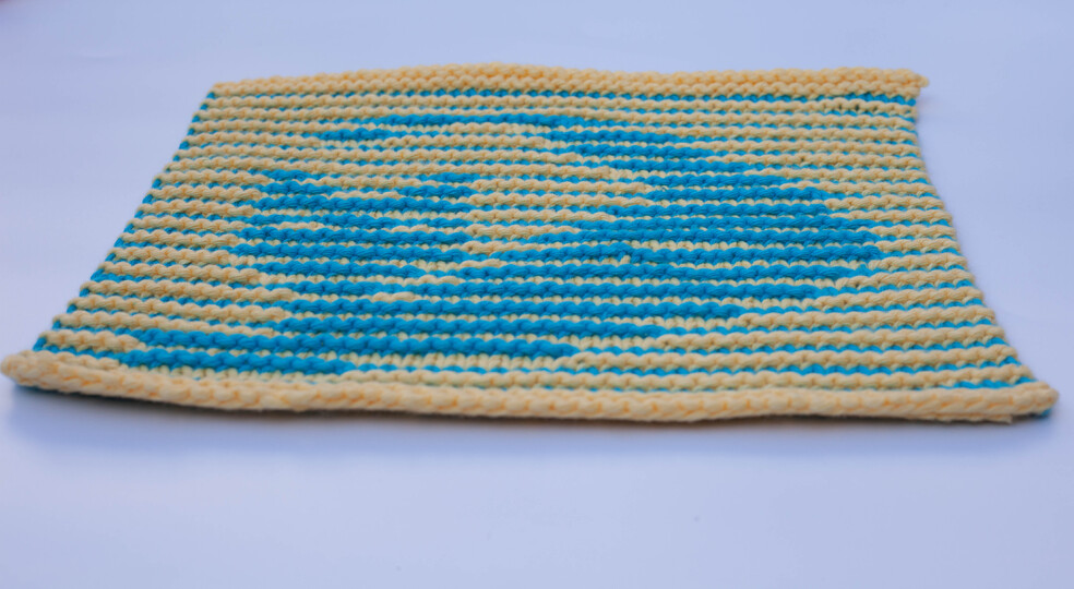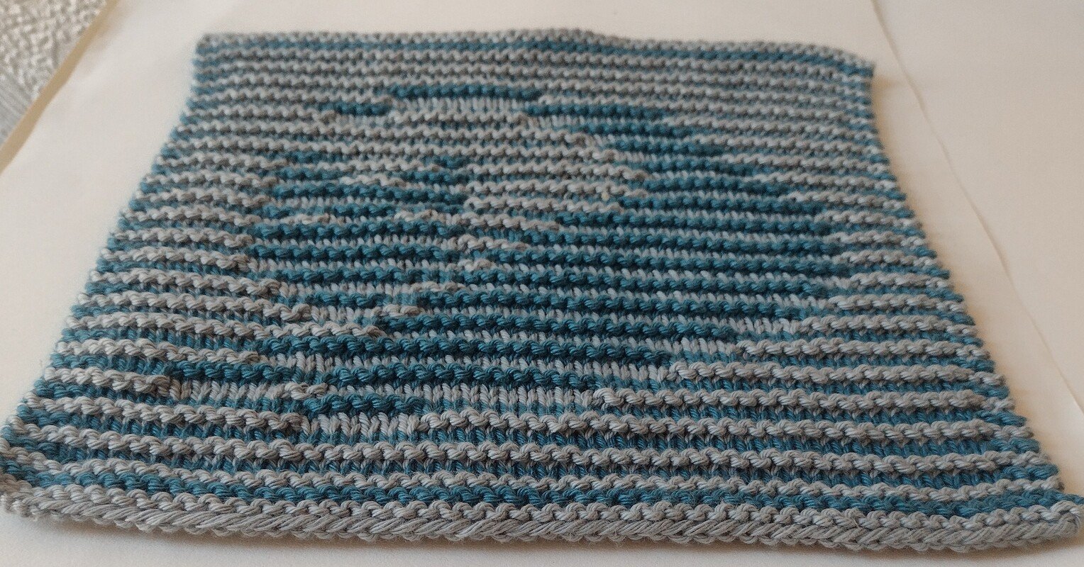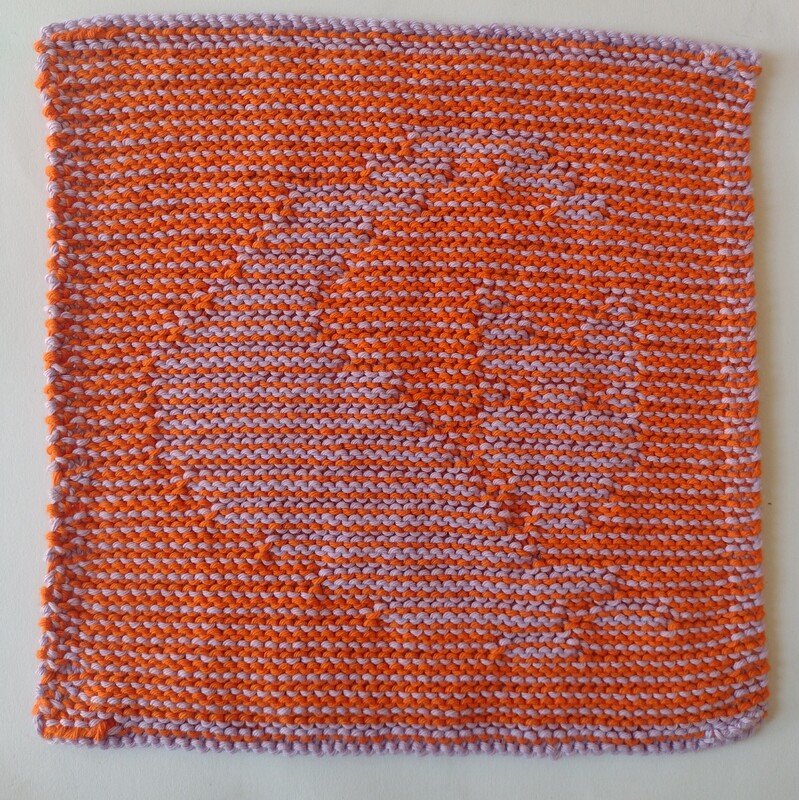 Welcome to the world of Illusion or Shadow Knitting. This quick dishcloth is a great way to learn the technique, it is super easy. The right side rows are always knitted while the patterning of the wrong side rows create the image. There are 3 garter edge stitches throughout.