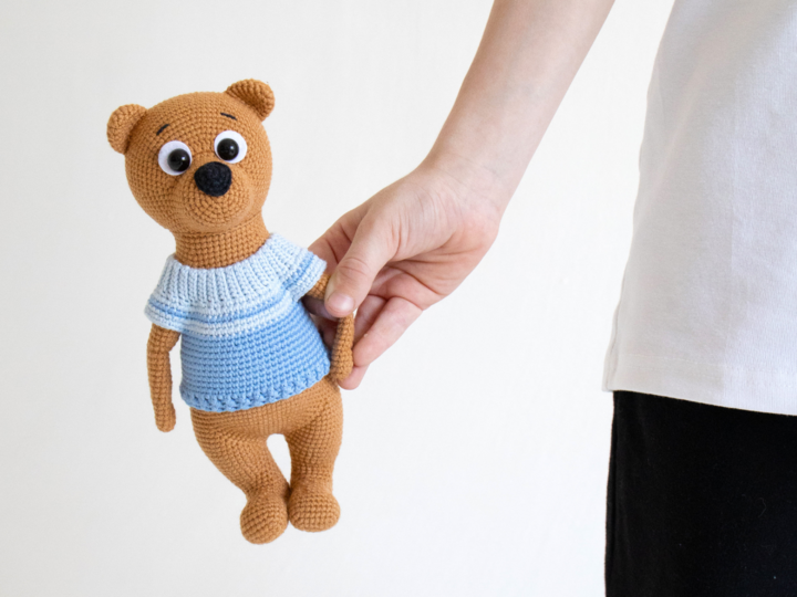A toy can be made of different types of yarn, but it is important to choose the appropriate ratio of thickness of yarn and hook size.