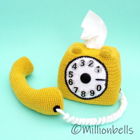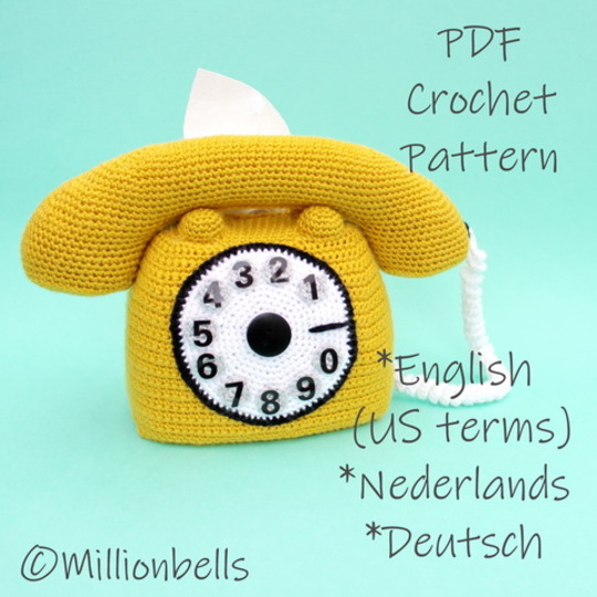 This PDF crochet pattern (US terminology) will guide you to crochet a groovy retro telephone tissue box cover as shown in pictures, made using soft acrylic yarn (DK / 8 ply) and crochet hook E (3.5 mm).