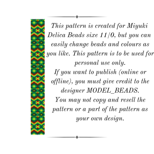This pattern is created for Miyuki Delica seed beads size 11, but you can change colors and beads as you please.